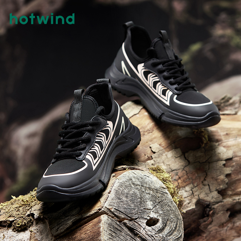 舒适轻便休闲女鞋 热风春夏新款 女士简约百搭黑色运动休闲鞋