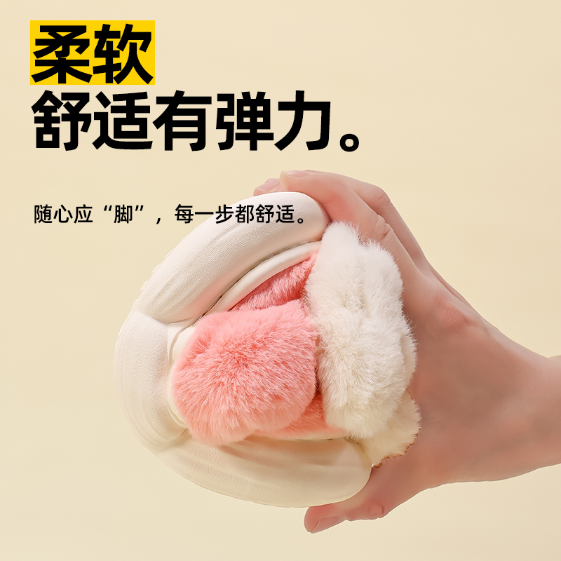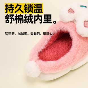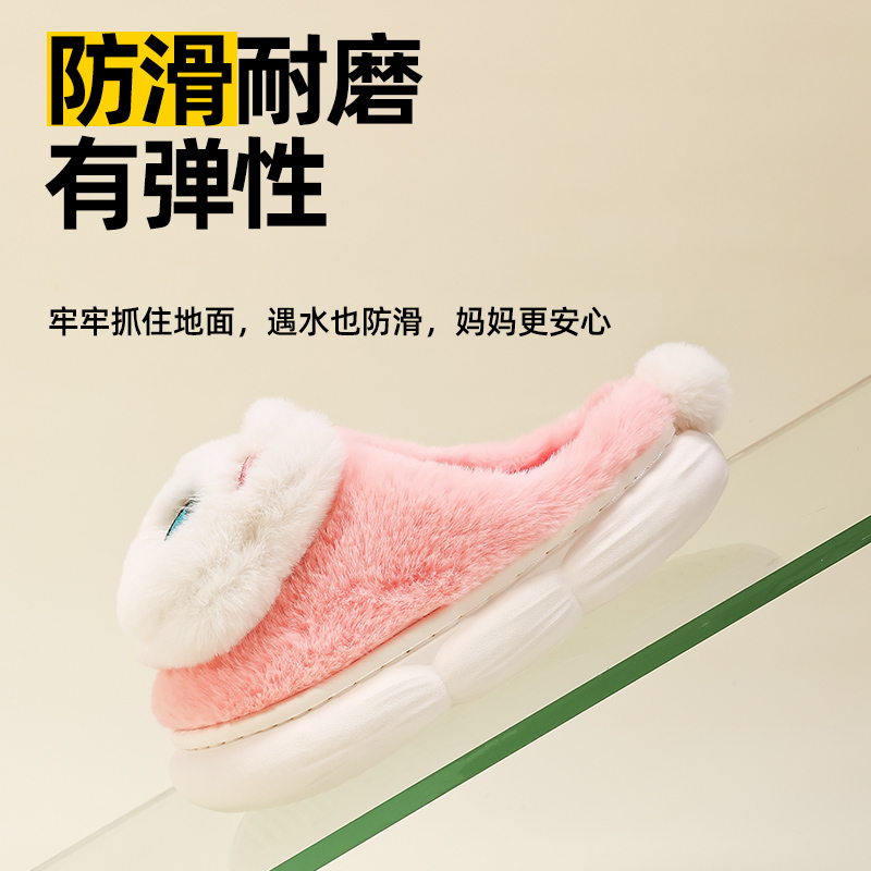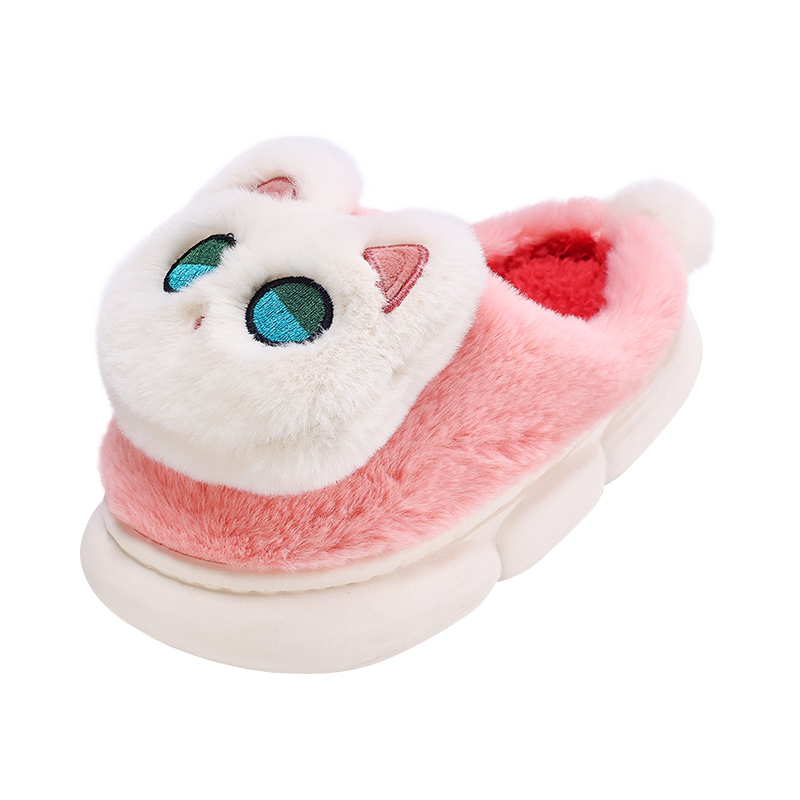 加绒软底室内家用棉拖厚底 亲子拖鞋 儿童棉拖鞋 女童卡通猫咪毛毛鞋