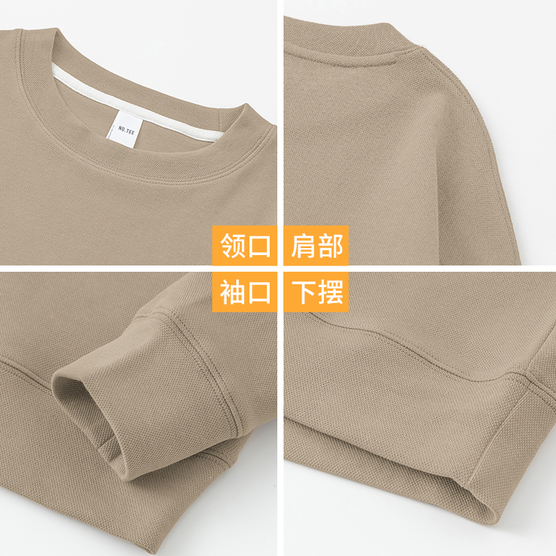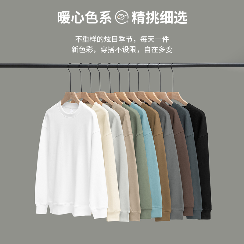 潮流宽松圆领长袖 纯色无帽上衣服美式 t恤 卫衣春秋季 350g重磅男士