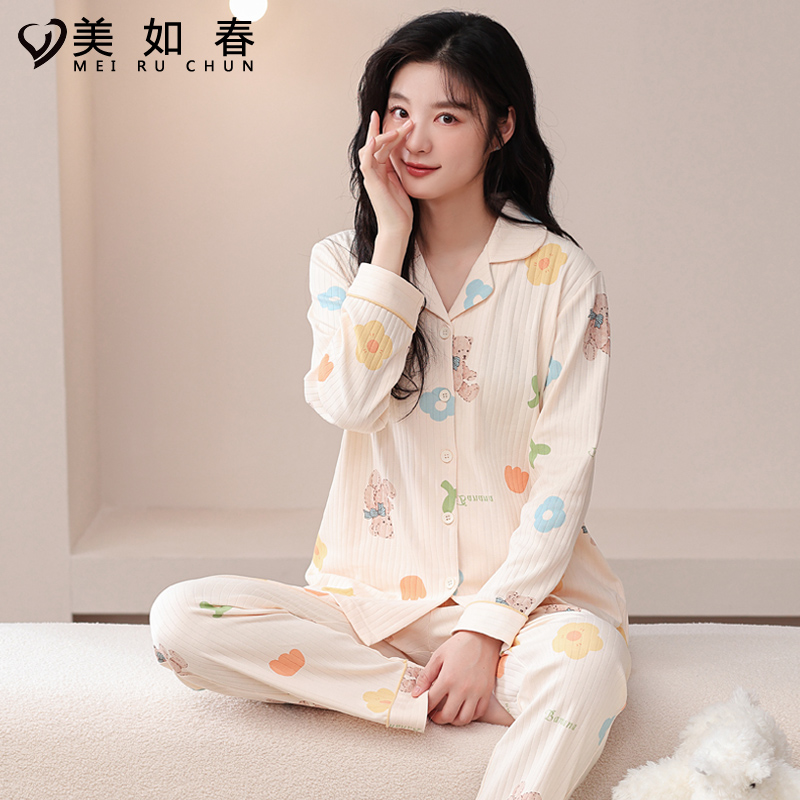 休闲家居服春天套装 莱卡 纯棉长袖 2025年睡衣女秋冬季 高档面料