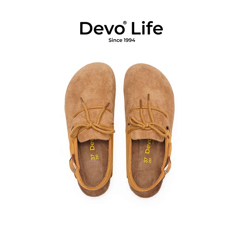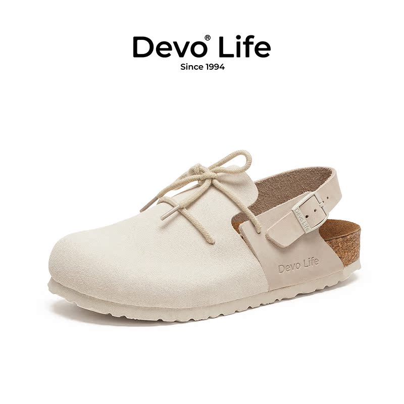 DYOWOZ 女增高3.3cm真皮厚底外穿 东园物作日系勃肯软木半包头拖鞋