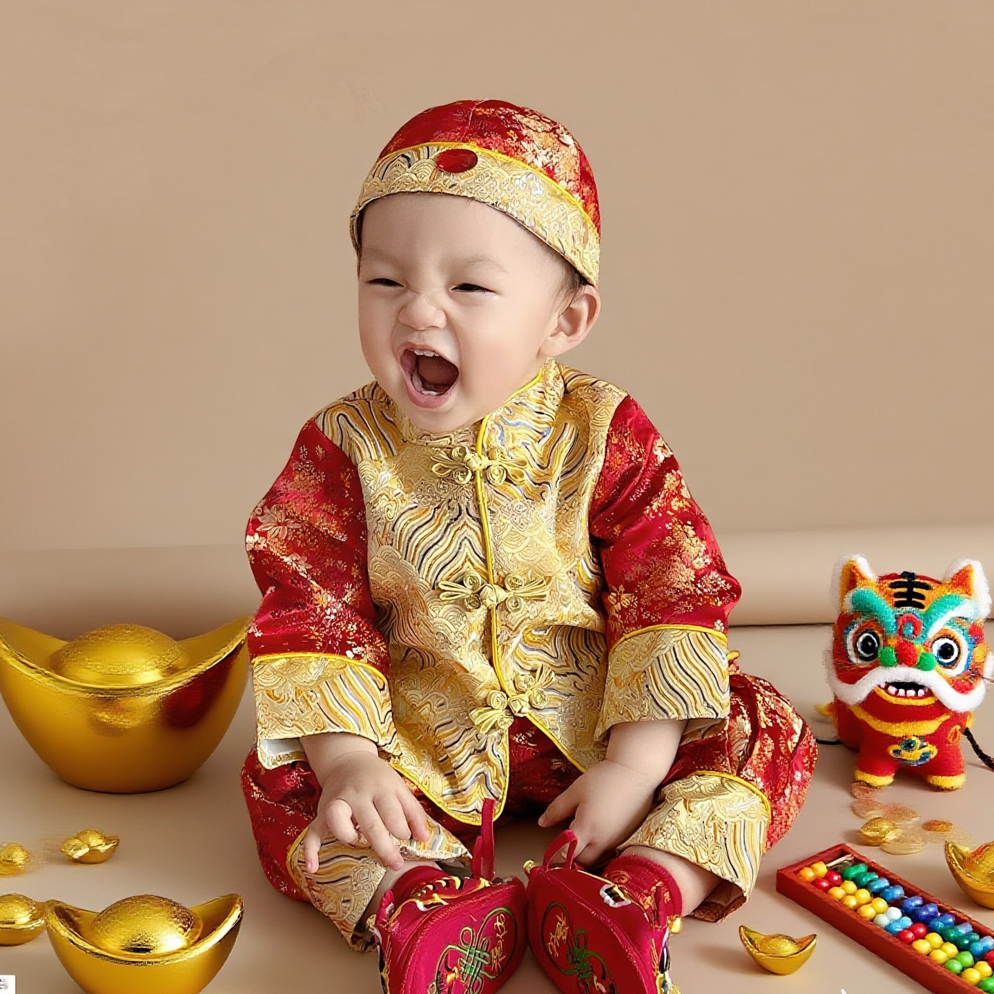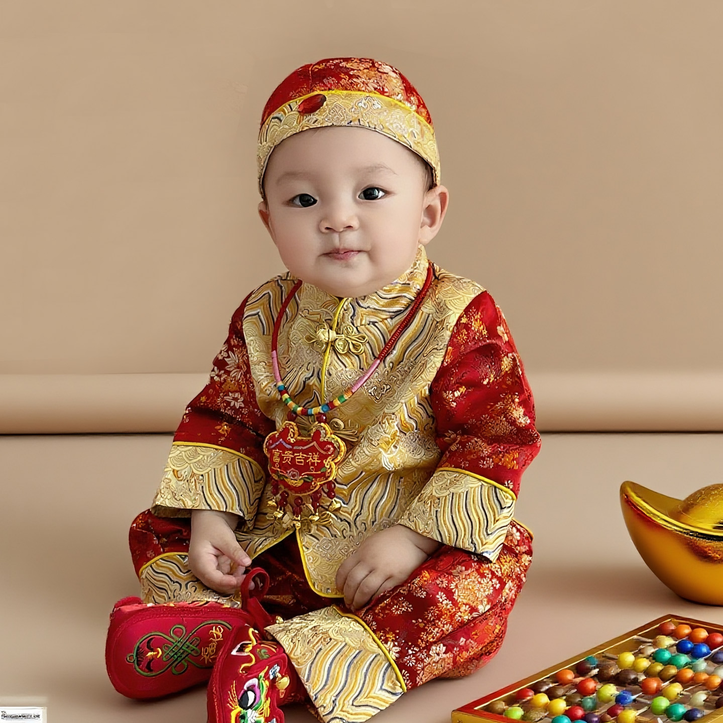 婴儿百日衣服汉服春装 套装 宝宝生日宴中式 宝宝周岁礼服男抓周唐装