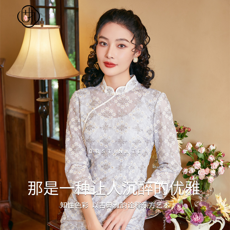 中式 MELINDA 博主同款 玲珑 冠乐绉提花桑蚕丝人丝旗袍连衣裙