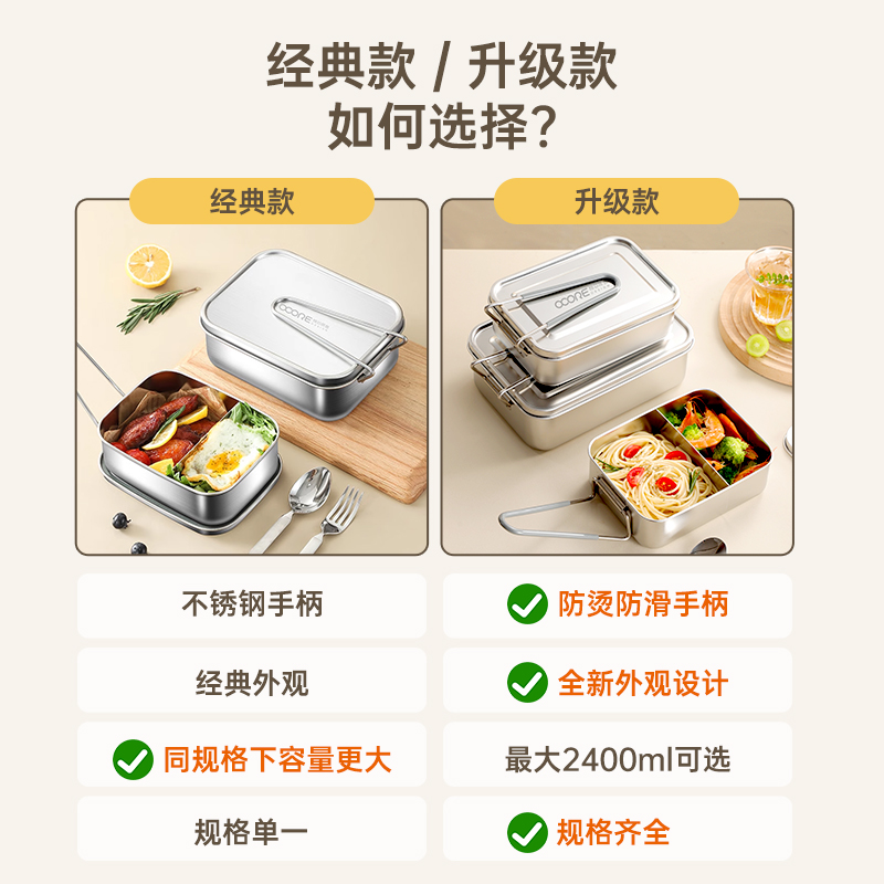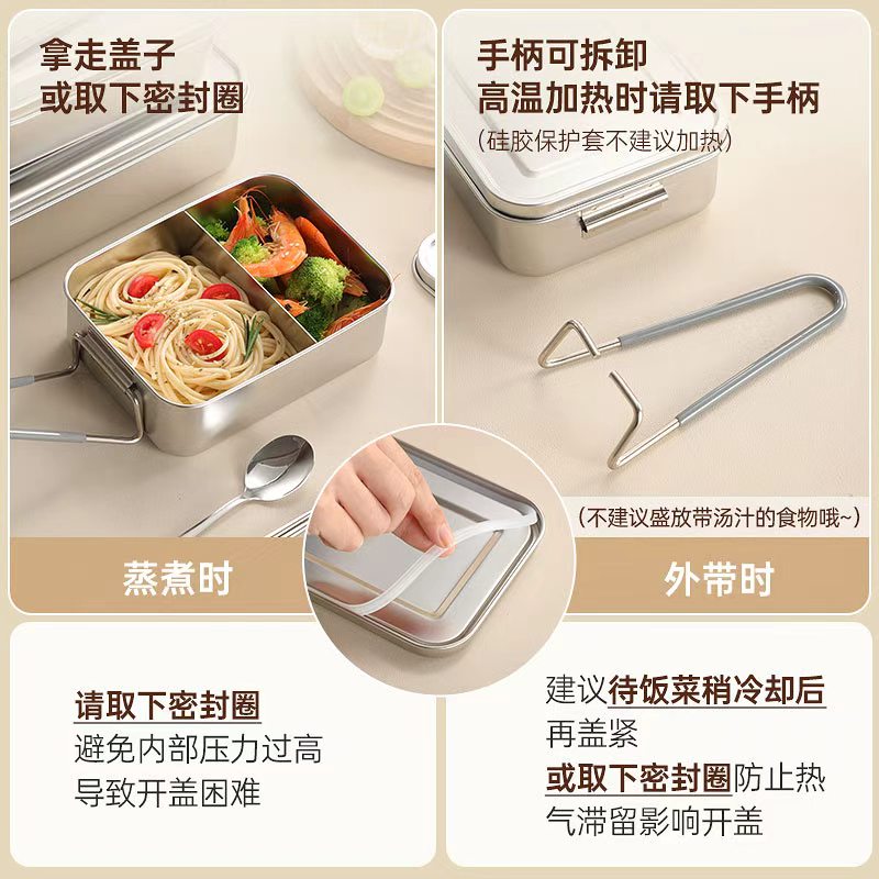 316不锈钢食品级老式 饭盒小学生专用分格上班族食堂打饭蒸饭餐盒