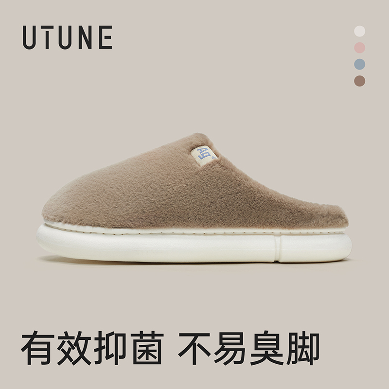 防臭抑菌室内家居情侣毛绒加厚保暖防滑 秋冬季 优调男士 乳胶棉拖鞋