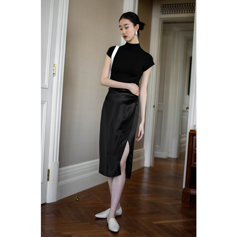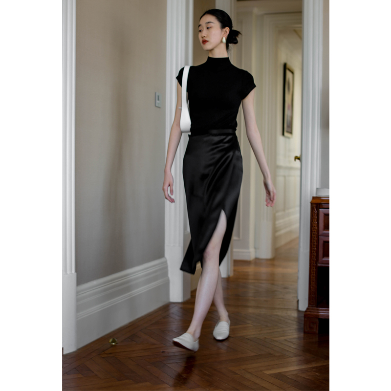 无有无印黑色显瘦弹力修身 t恤23237 半高领气质短袖
