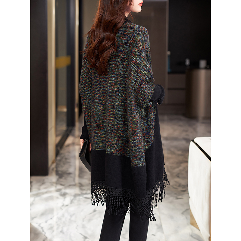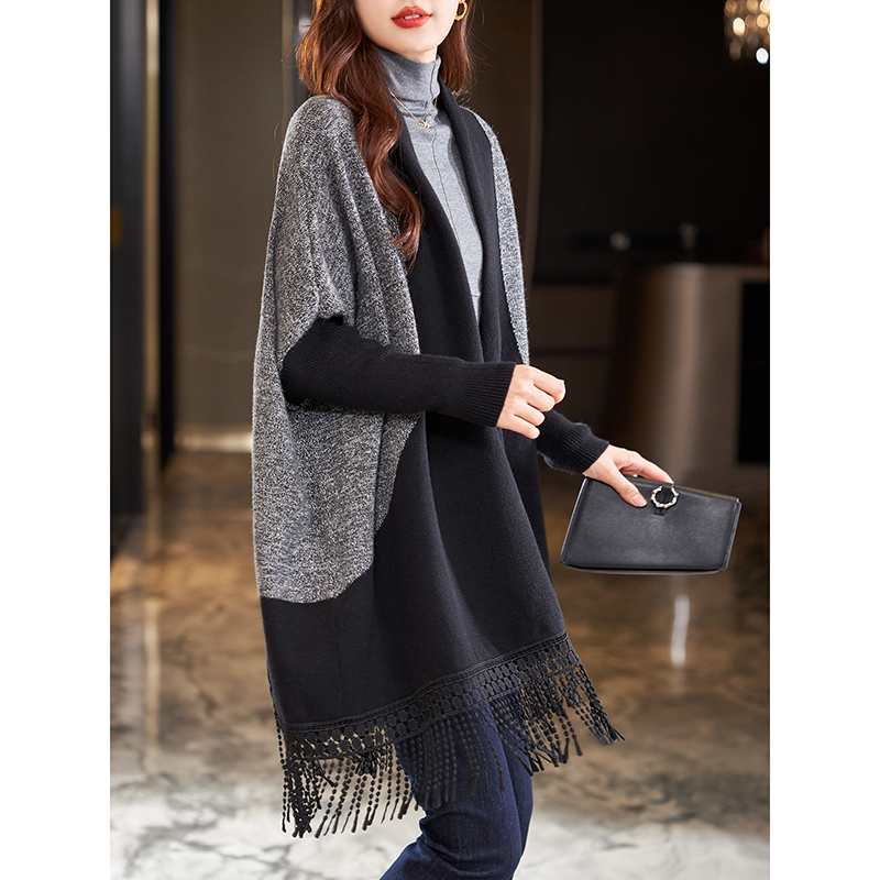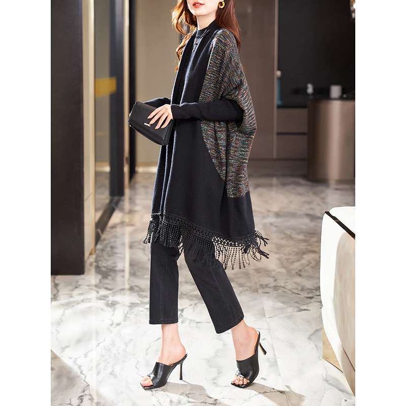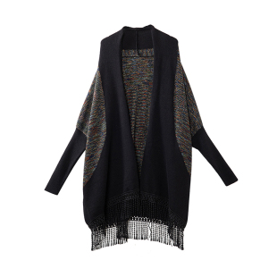 流苏针织开衫 新款 女中长款 披肩外套女2025秋季 时尚 宝诗黎蝙蝠长袖