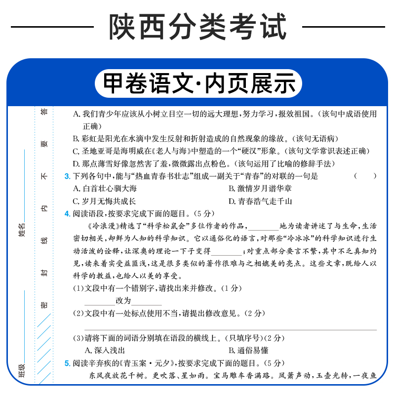 陕西省三校生职教高考复习资料2026普高生陕西省高职分类招生考试单招考试复习资料2025语文数学英语教材历年真题甲乙卷中职对口春