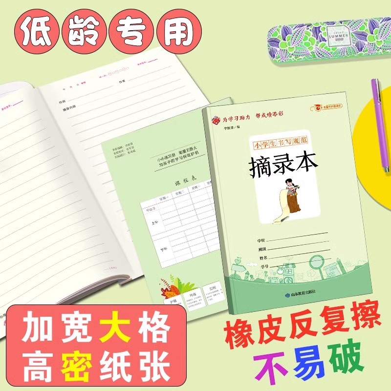 小学生书写规范 田字格读书笔记本护眼本小开本小学生一二三四五六年级阅读记录读书记录学生好词好句笔记本32开练习本