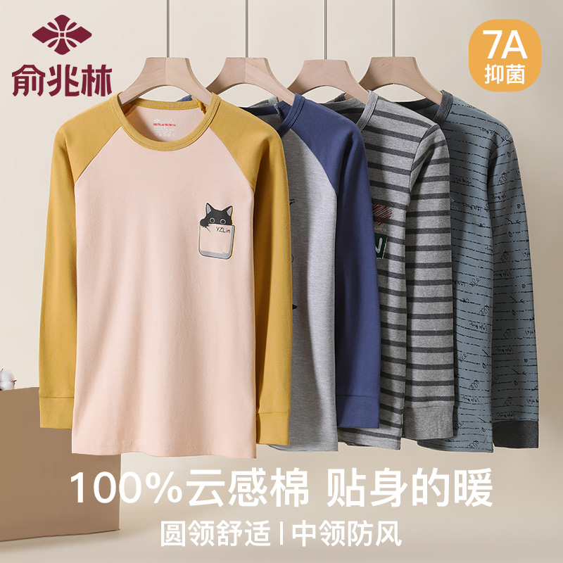 俞兆林秋衣男上衣单件青少年纯棉保暖内衣初高中生大童全棉打底衫