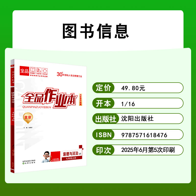 七7年级 2025秋 道德与法治上册 北京地区使用 人教版 全品作业本