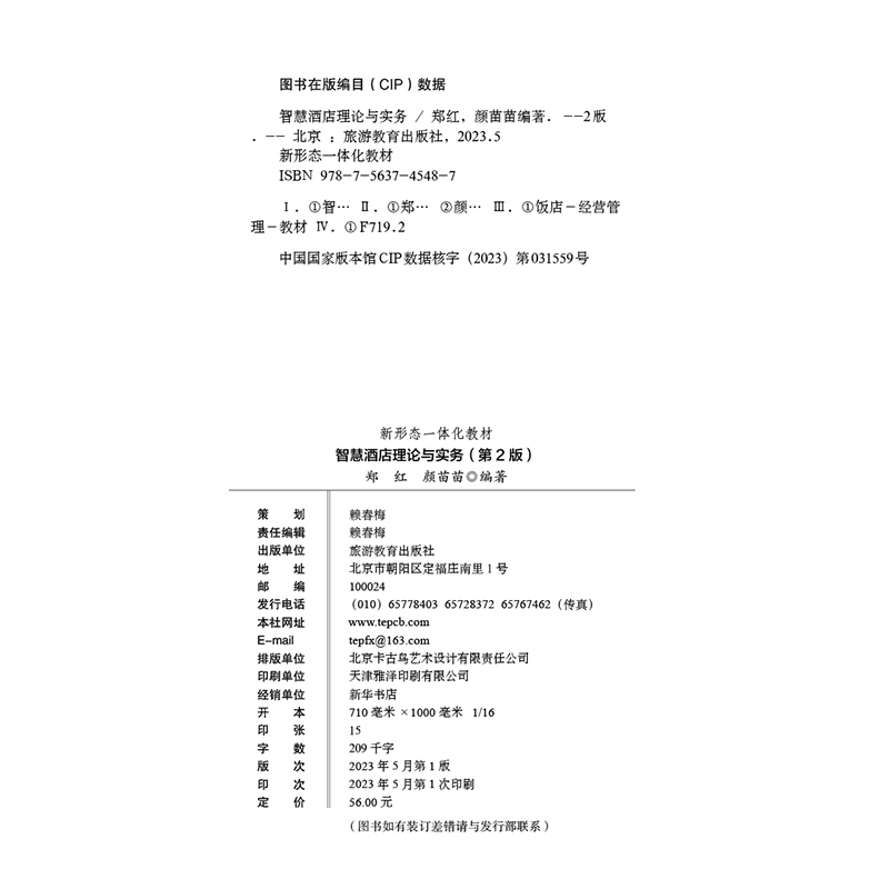 智慧酒店理论与实务2版 社 9787563745487饭店职业经理人丛书郑红颜苗苗主编旅游教育出版