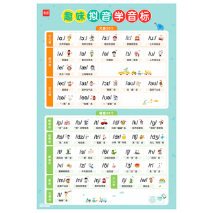 小学英语趣味拟音学音标挂图零基础学音标表视频有声挂图48个国际音标小学音标发音挂图墙贴英语单词入门训练拼读学习神器 易蓓