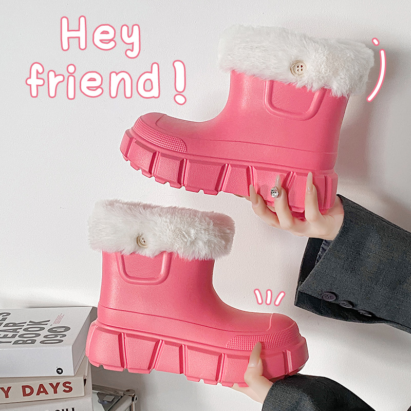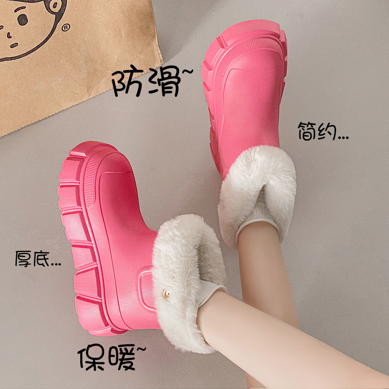 外出雪地靴加绒加厚保暖雨天棉鞋 2024新款 女士冬季 高跟防水棉拖鞋