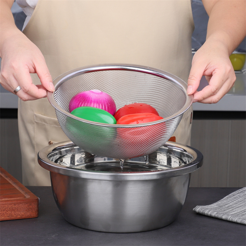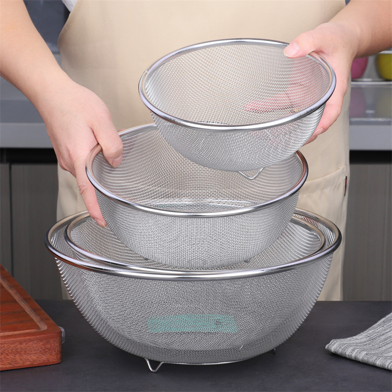 304不锈钢网篮家用圆底篮子细密硬网漏盆淘米篮过滤网漏筛水果篮