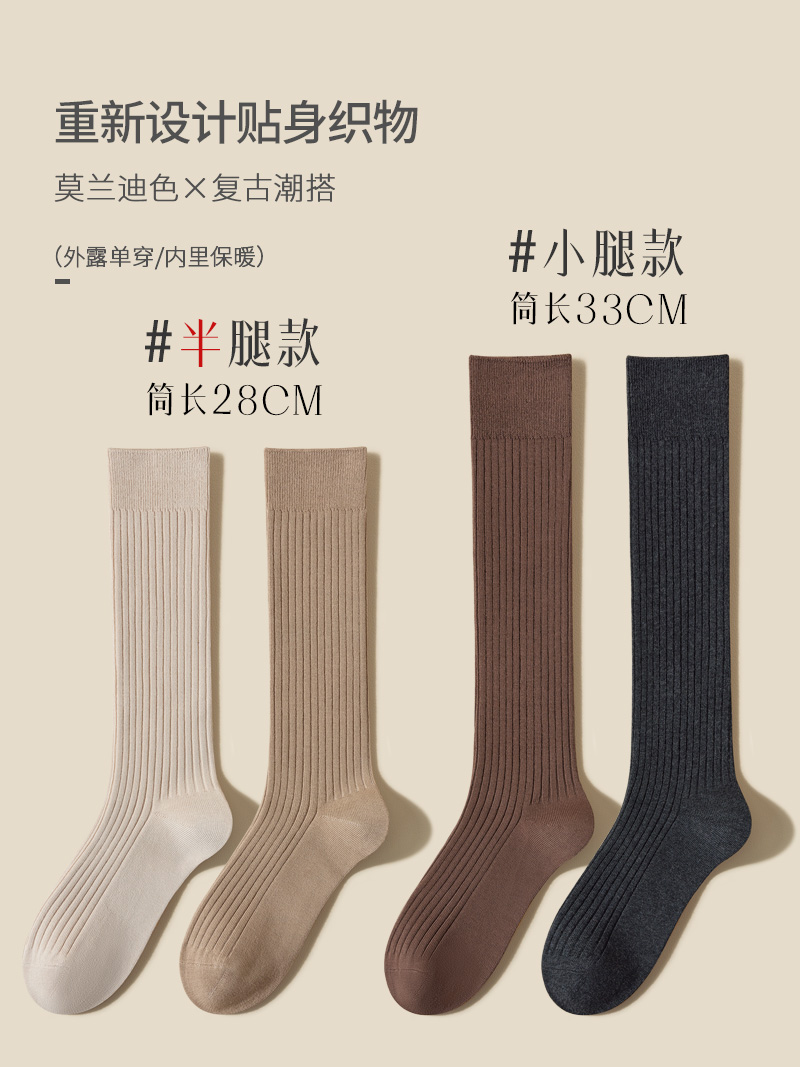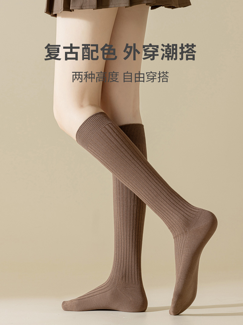 小腿袜子女春秋季 JK潮 过膝袜纯棉中筒袜微压显瘦无骨长筒长袜夏季