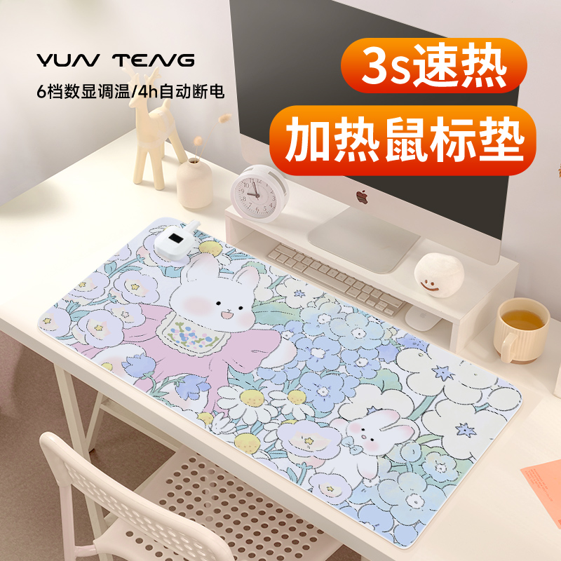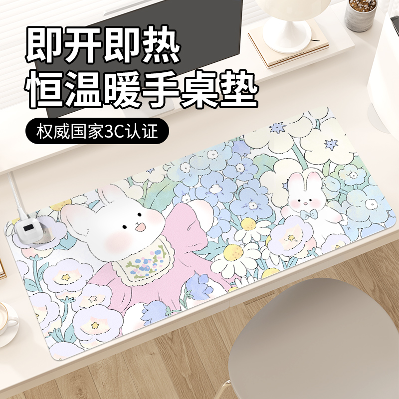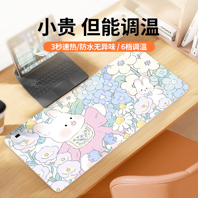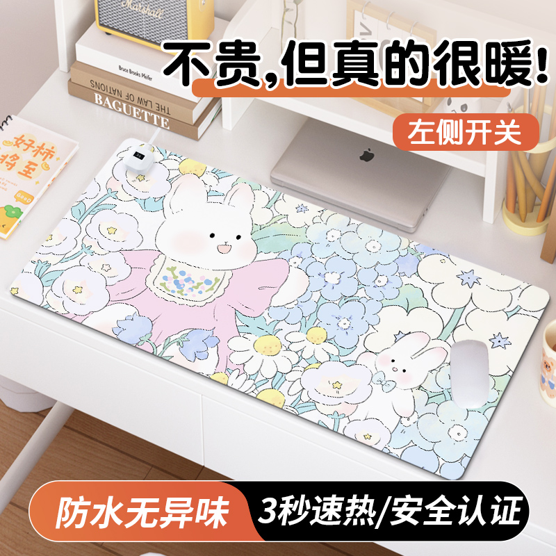 简约暖桌垫usb加热鼠标垫超大女生办公室工位桌面垫冬季 取暖防冻手发热垫笔记本电脑键盘垫写字台左侧开关