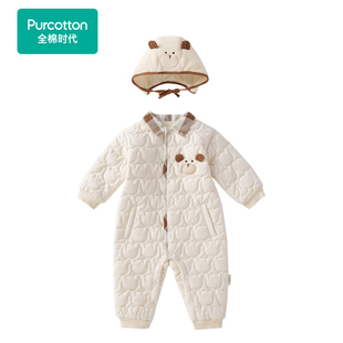 全棉时代新款 婴儿衣服加厚连帽连体衣宝宝外套秋冬外出服 冬季