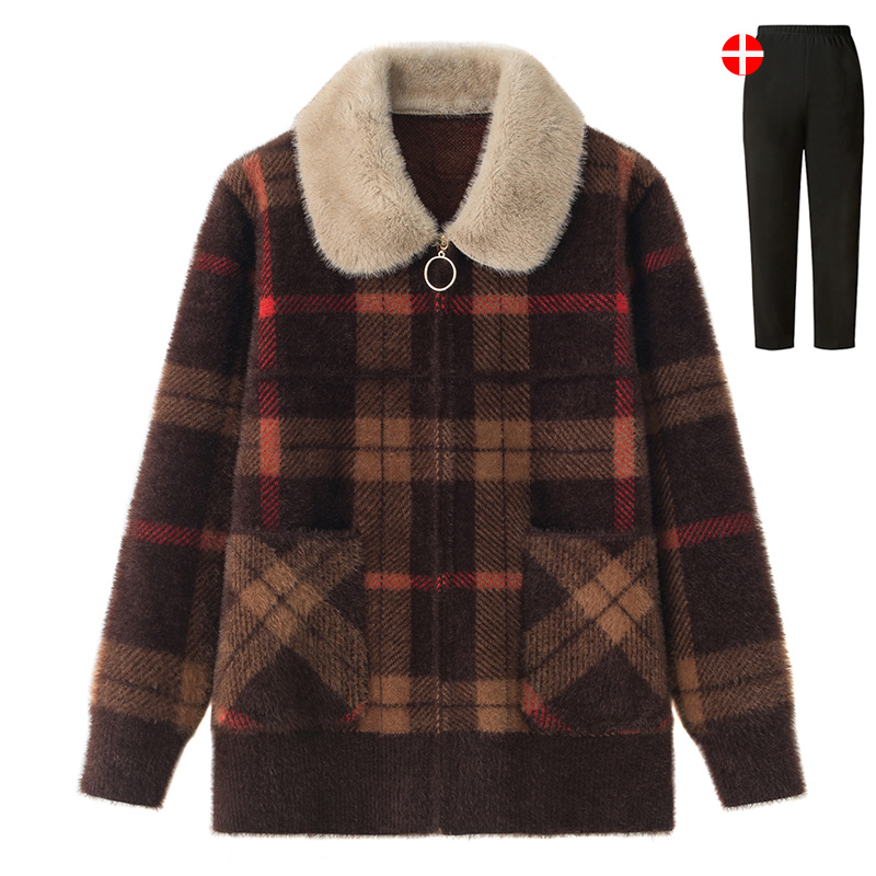 秋冬外套保暖老人衣服女 加厚奶奶毛衣针织开衫 中老年人秋装 妈妈装