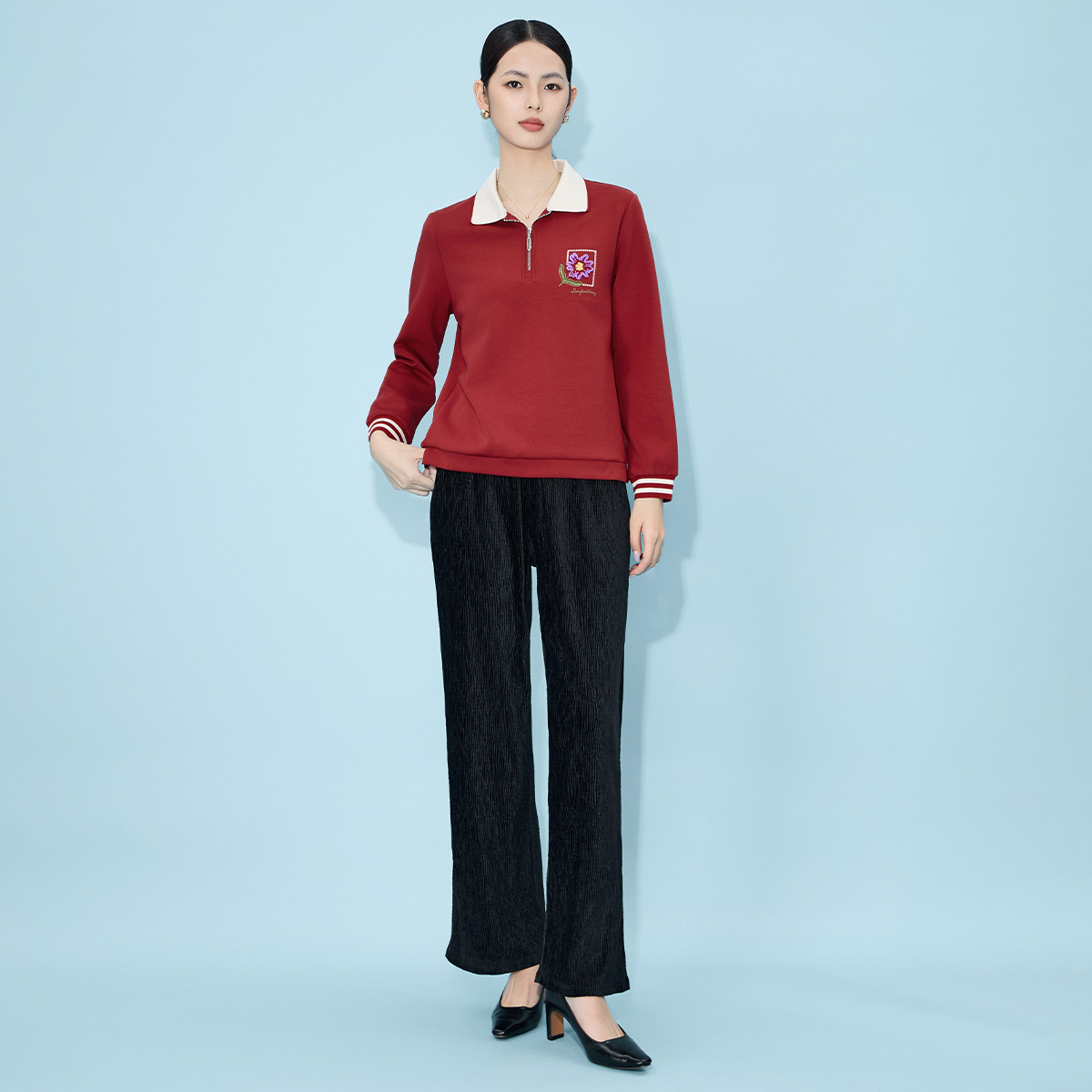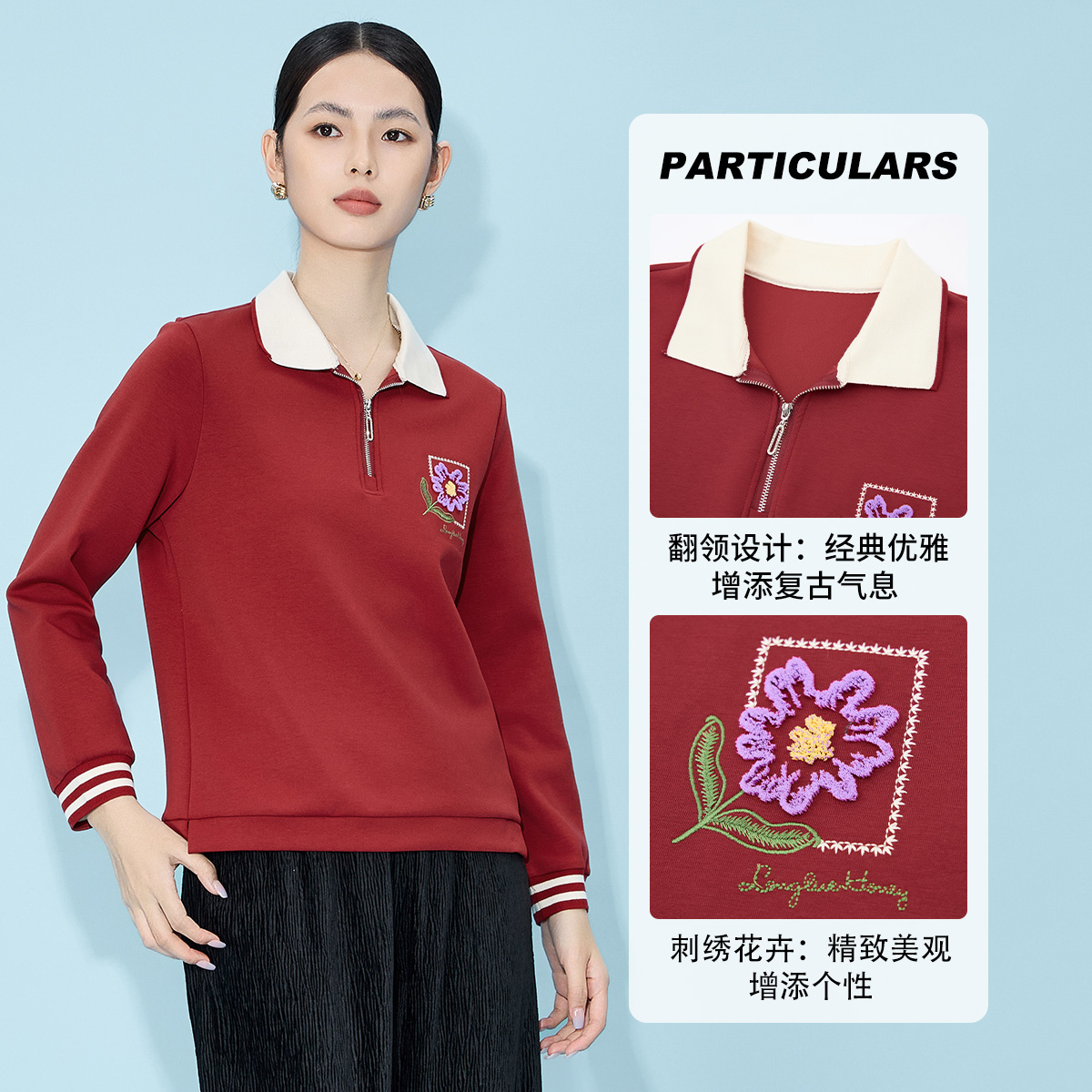 POLO衫 卫衣红色含莫代尔棉翻领女上装 2025春夏新款 马天奴官方正品