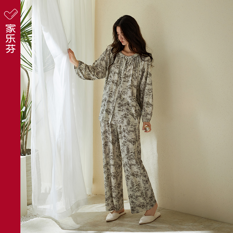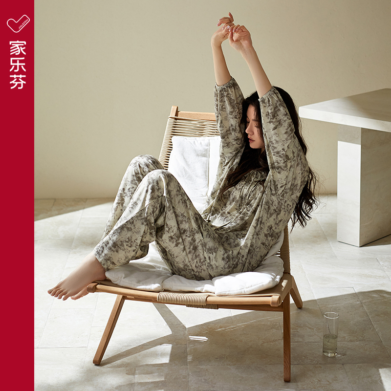 宽松休闲大码 芬腾女士睡衣春秋季 套装 套头秋款 全棉家居服 纯棉长袖