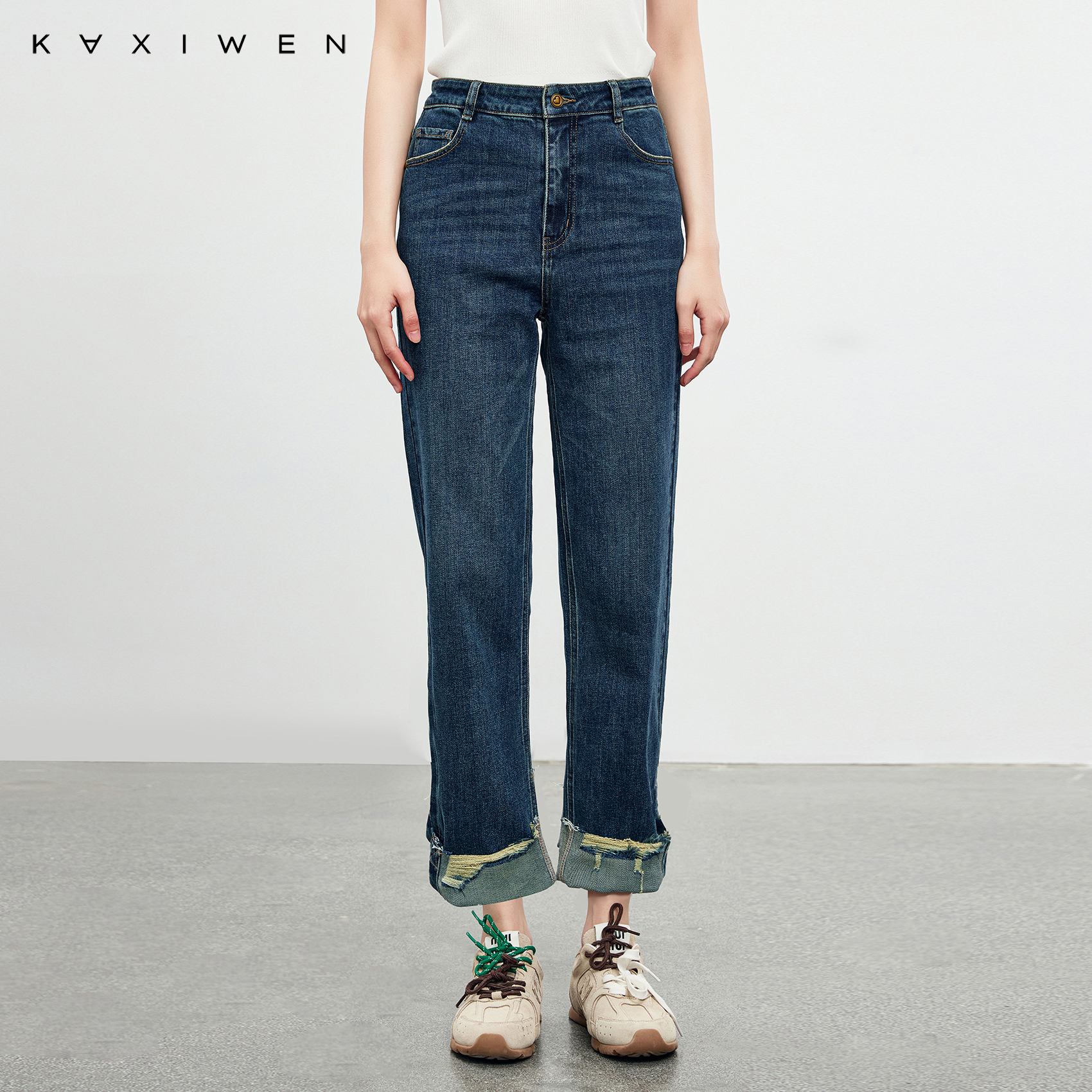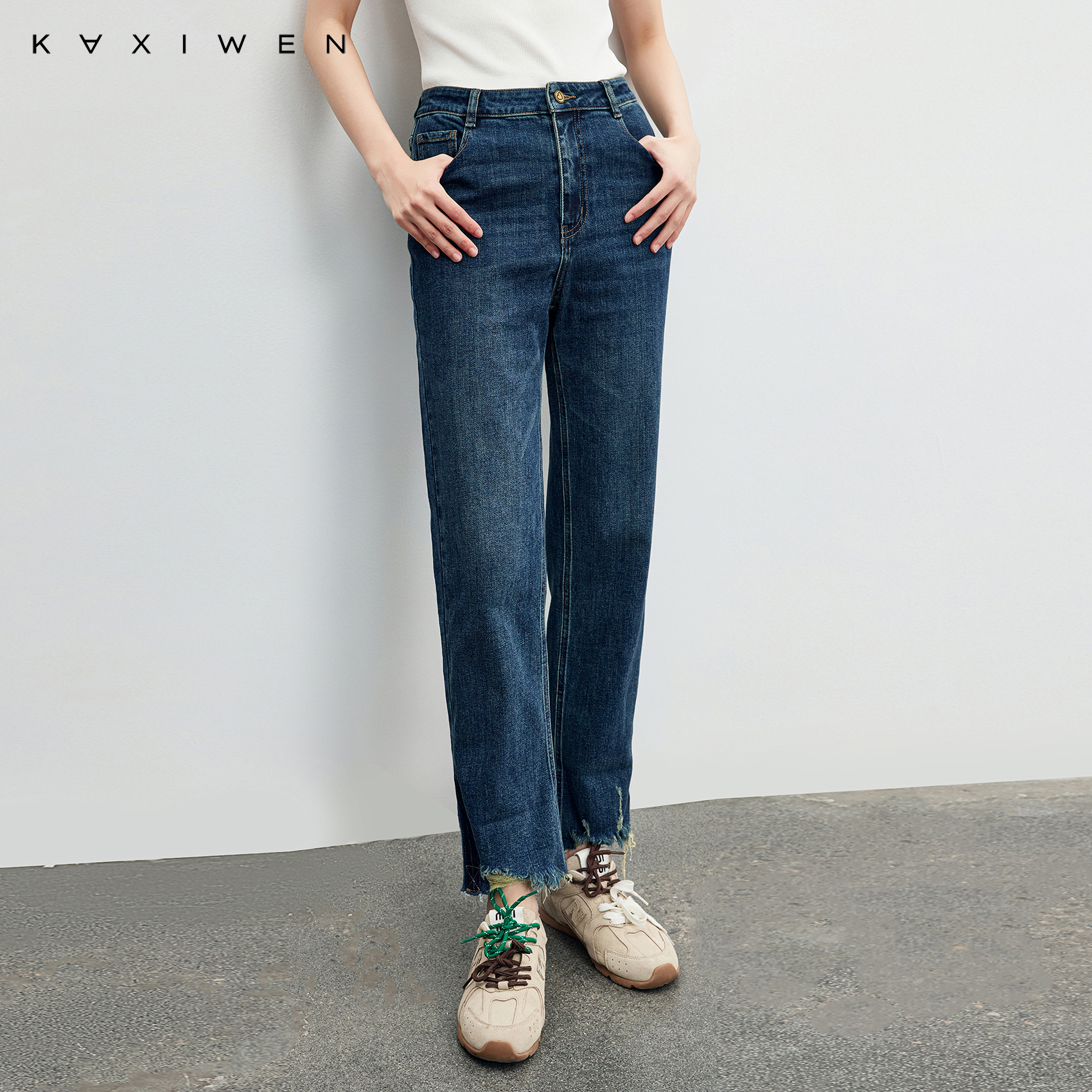通勤简约原色裤 唐狮25春夏新款 时尚 女休闲直筒裤 子女W 牛仔裤