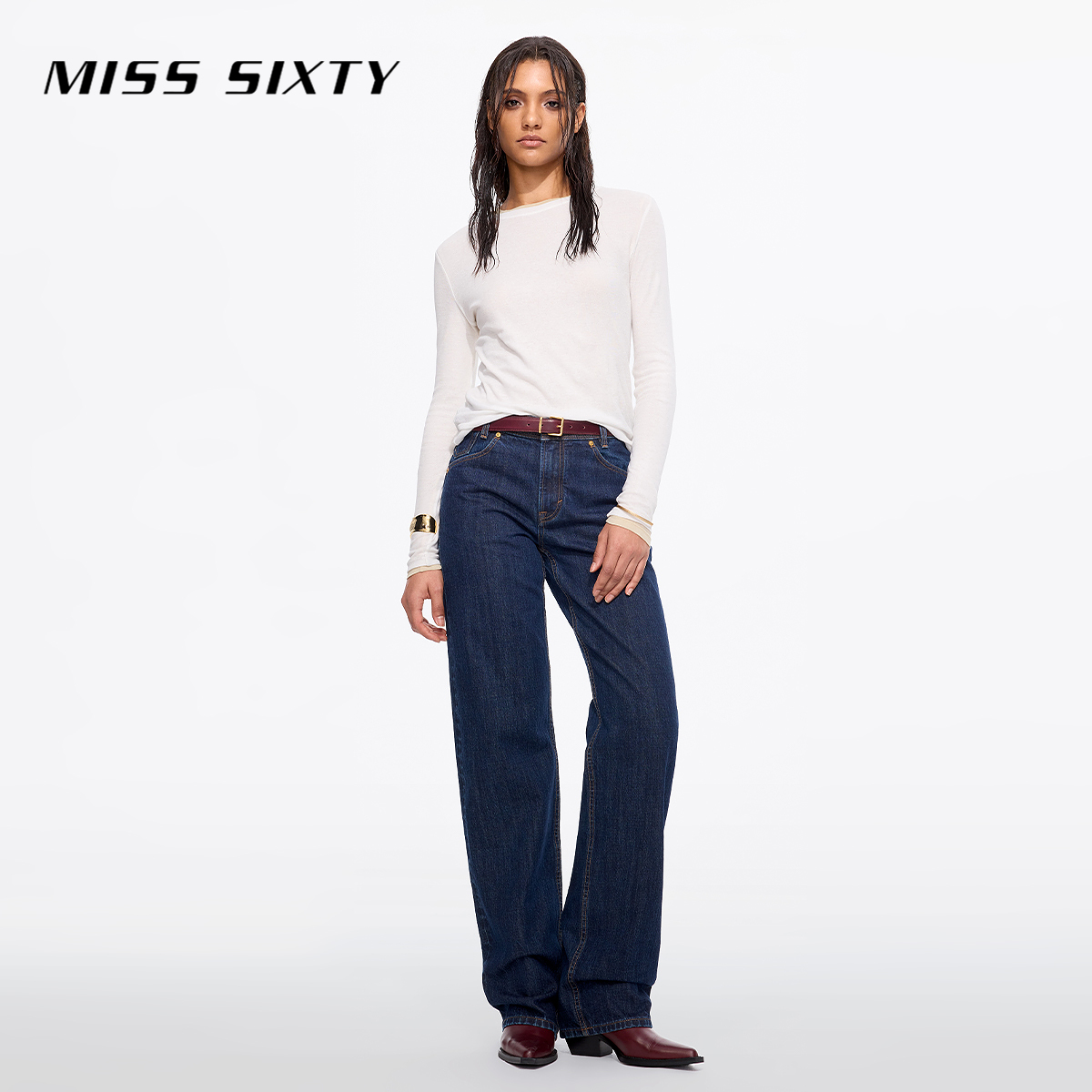 摇滚洗磨莱卡棉弹力精裁高腰修长及地微喇 MOCO牛仔裤 双11预售