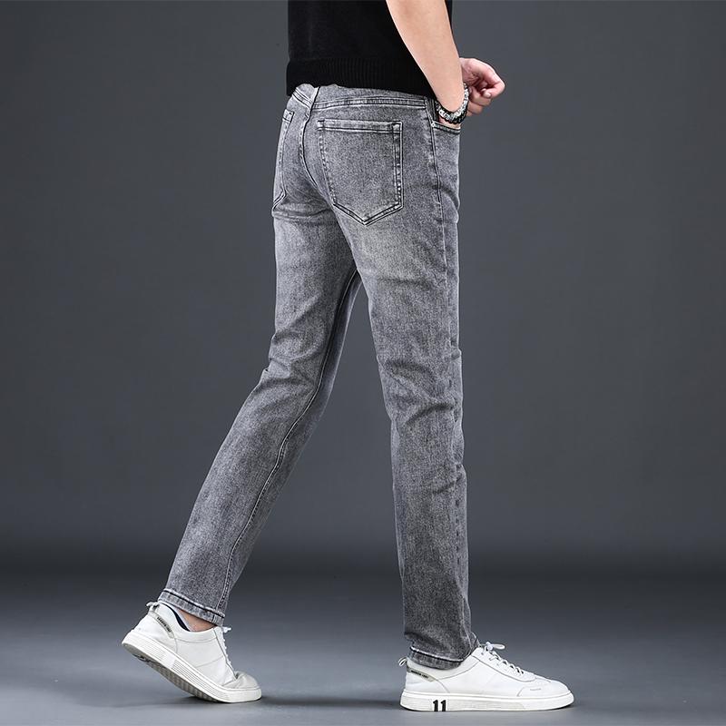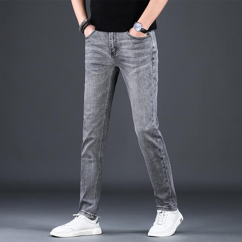 款 浅灰色牛仔裤 弹力修身 小脚韩版 子 欧货2024新款 潮牌休闲长裤 男士
