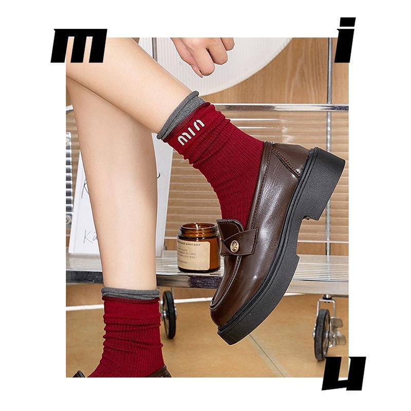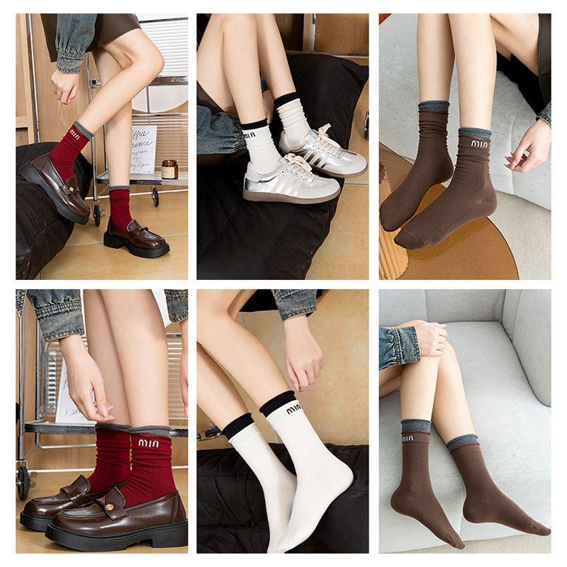 秋冬女袜2025新款 中筒袜女士袜子 粉色可爱少女卡通棉袜搭配小皮鞋