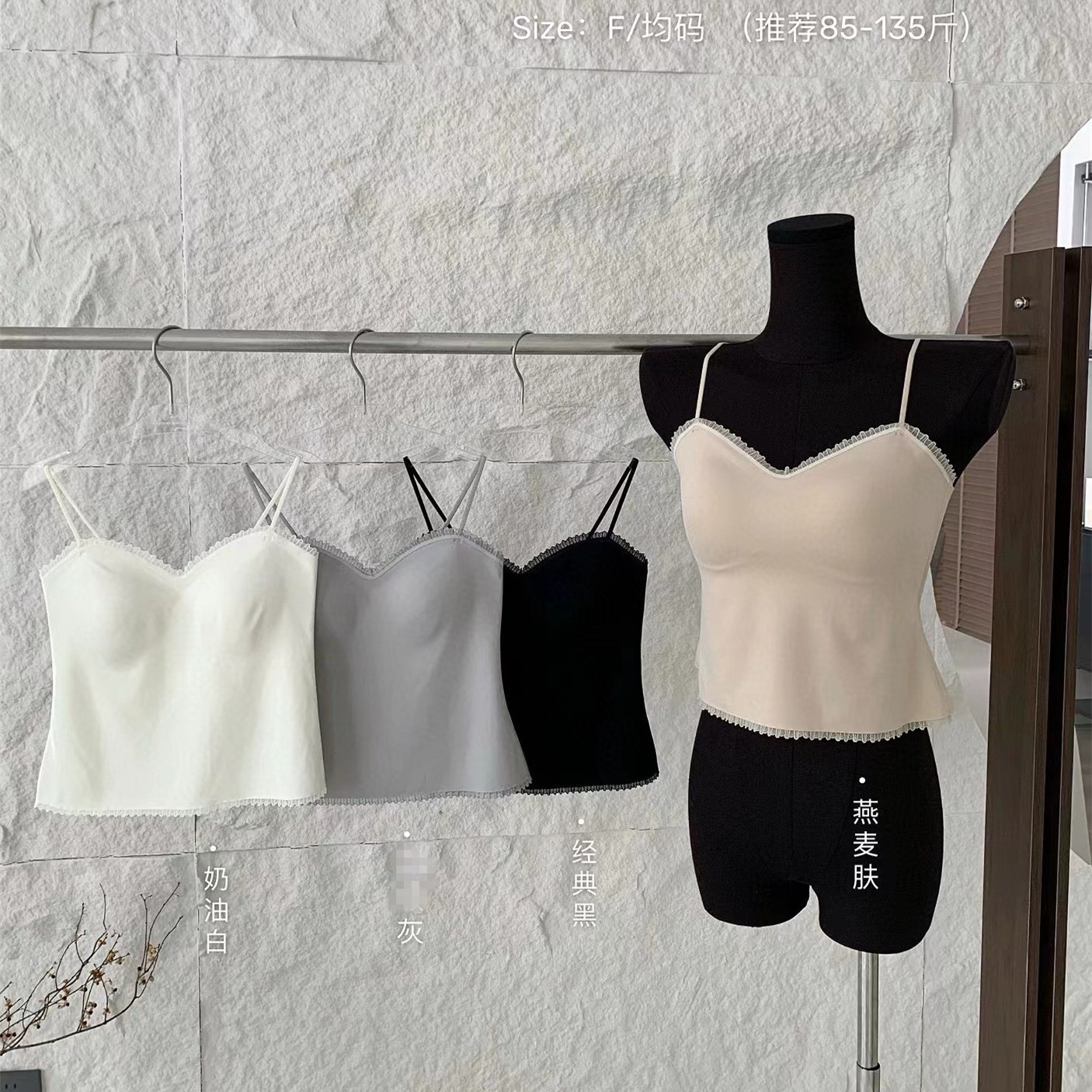 喵小言纯欲花边裸感背心W2528细带少女温柔优雅自带胸垫打底背心