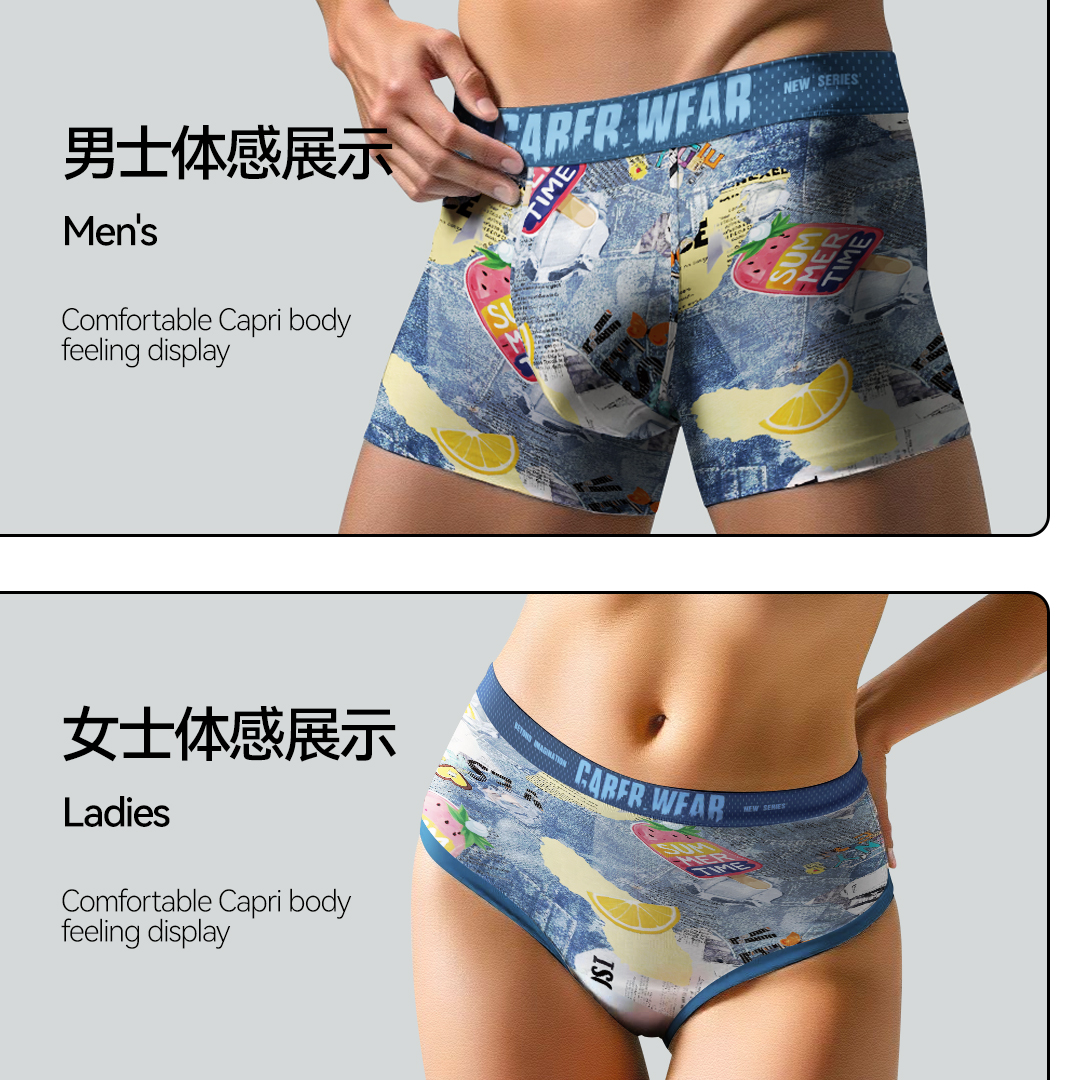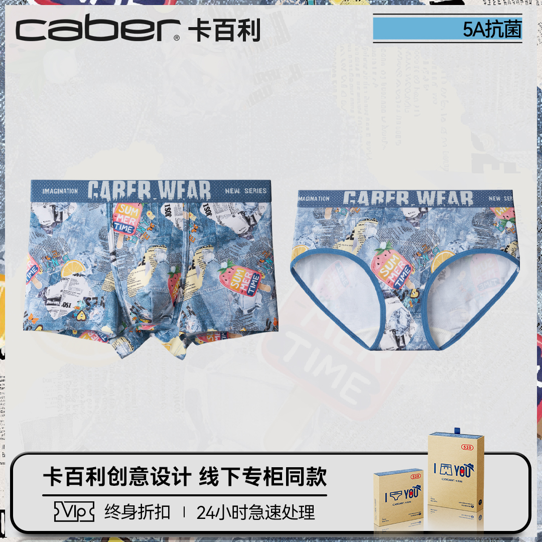 新品 caber 印花牛仔平角三角透气棉质运动内裤 时尚 卡百利情侣内裤