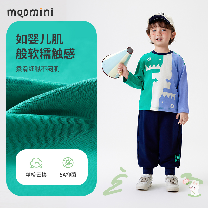 儿童秋装 MQDmini男童长袖 圆领打底衫 秋季 男宝宝上衣服 t恤2025新款