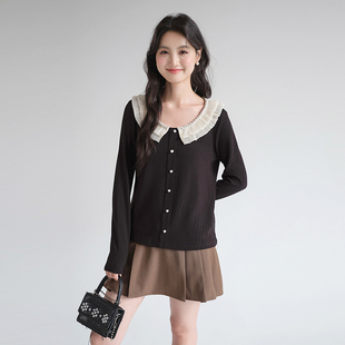 复古娃娃领针织衫 蓝若水大码 法式 2025秋新款 胖MM淑女打底上衣 女装