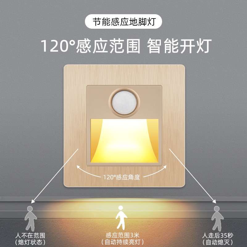 小夜灯86型嵌入式 楼梯感应灯人体感应过道家用酒店LED智能地脚灯