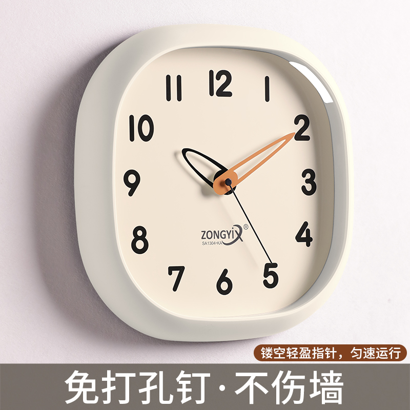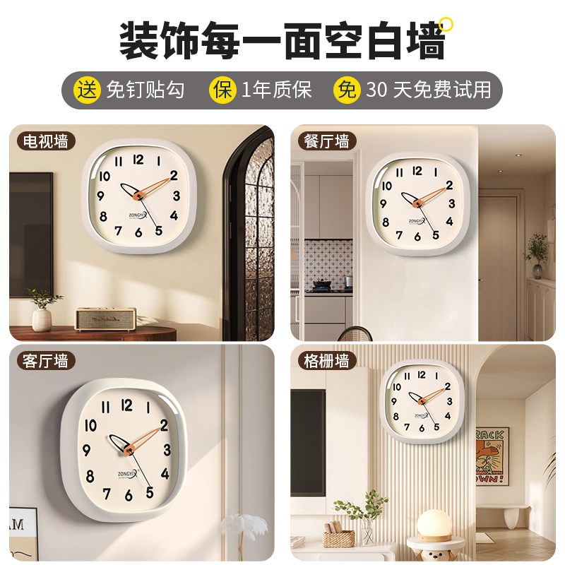 奶油风简约家庭挂钟2025新款 家用客厅创意挂墙钟表高级感静音时钟