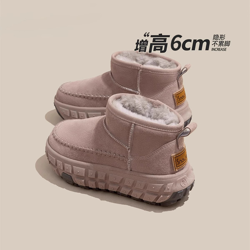加绒加厚轮胎底防水厚底棉鞋 新款 厚底6CM雪地靴女2025冬季 全牛皮