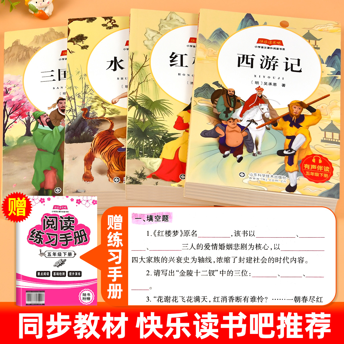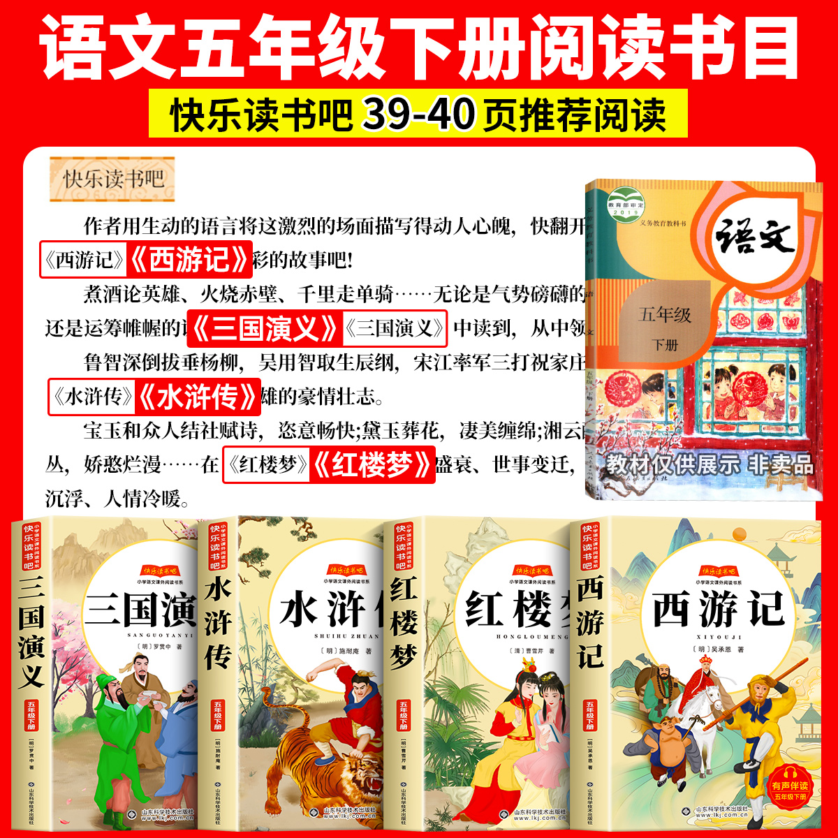 5下西游记水浒传三国演义青少年版 五年级下册必读课外阅读书快乐读书吧老师推荐 本书目 小学生版 全套4册红楼梦中国四大名著原著正版