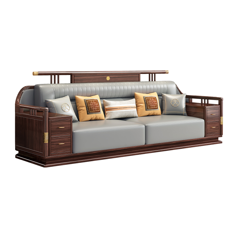 政府补贴实木沙发新中式 高端家具木质沙发 胡桃木贵妃家用客厅中式