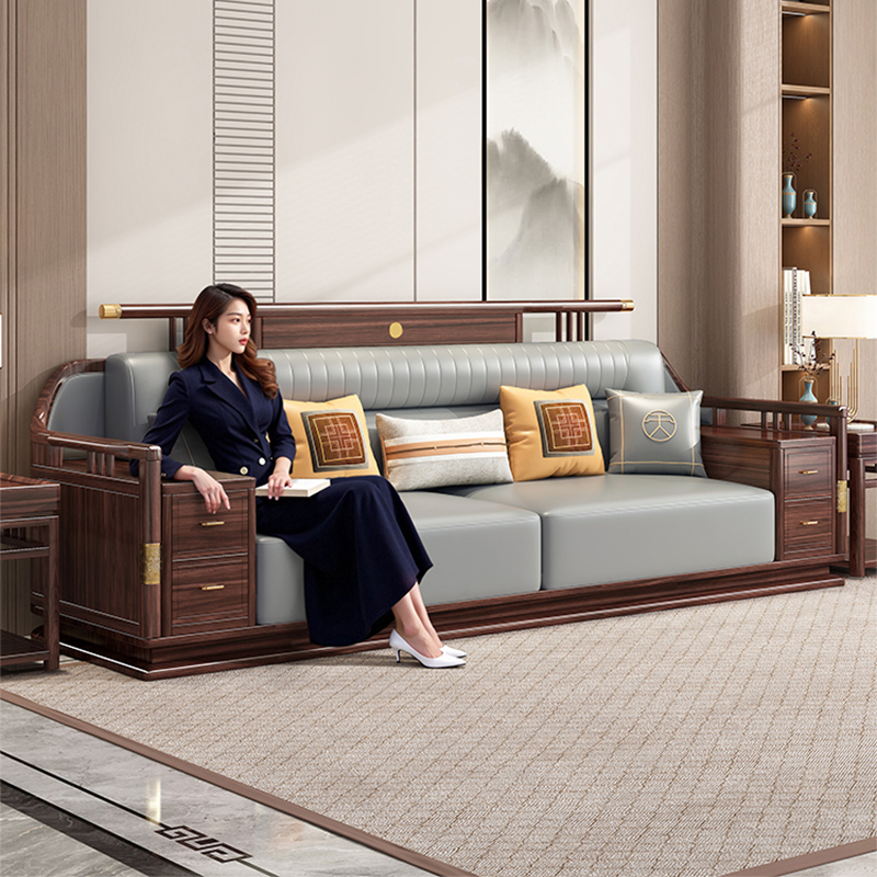 政府补贴乌金木实木沙发别墅客厅现代高端新中式 家具组合真皮沙发