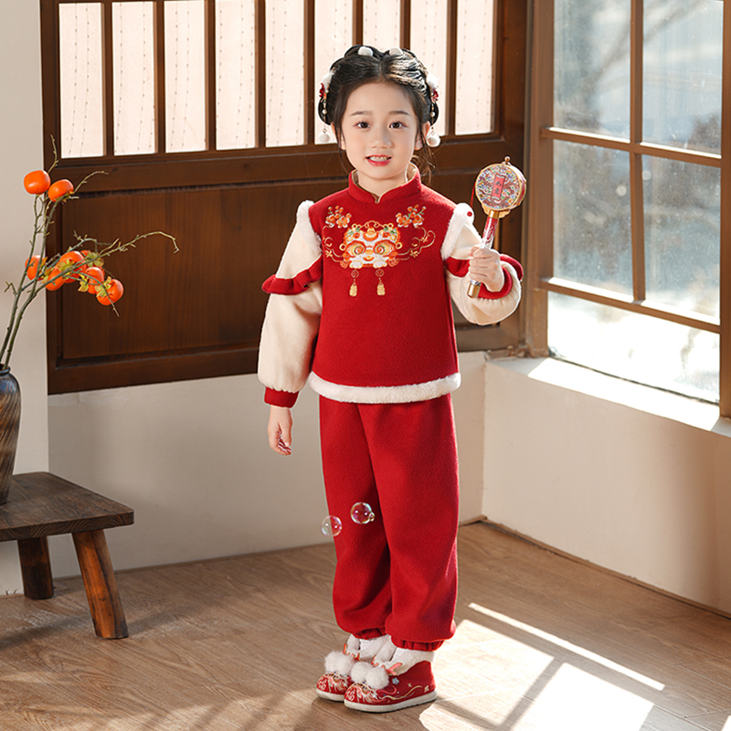 女童拜年服冬装 加厚周岁礼服女宝红色过年喜庆衣服 汉服中国风唐装