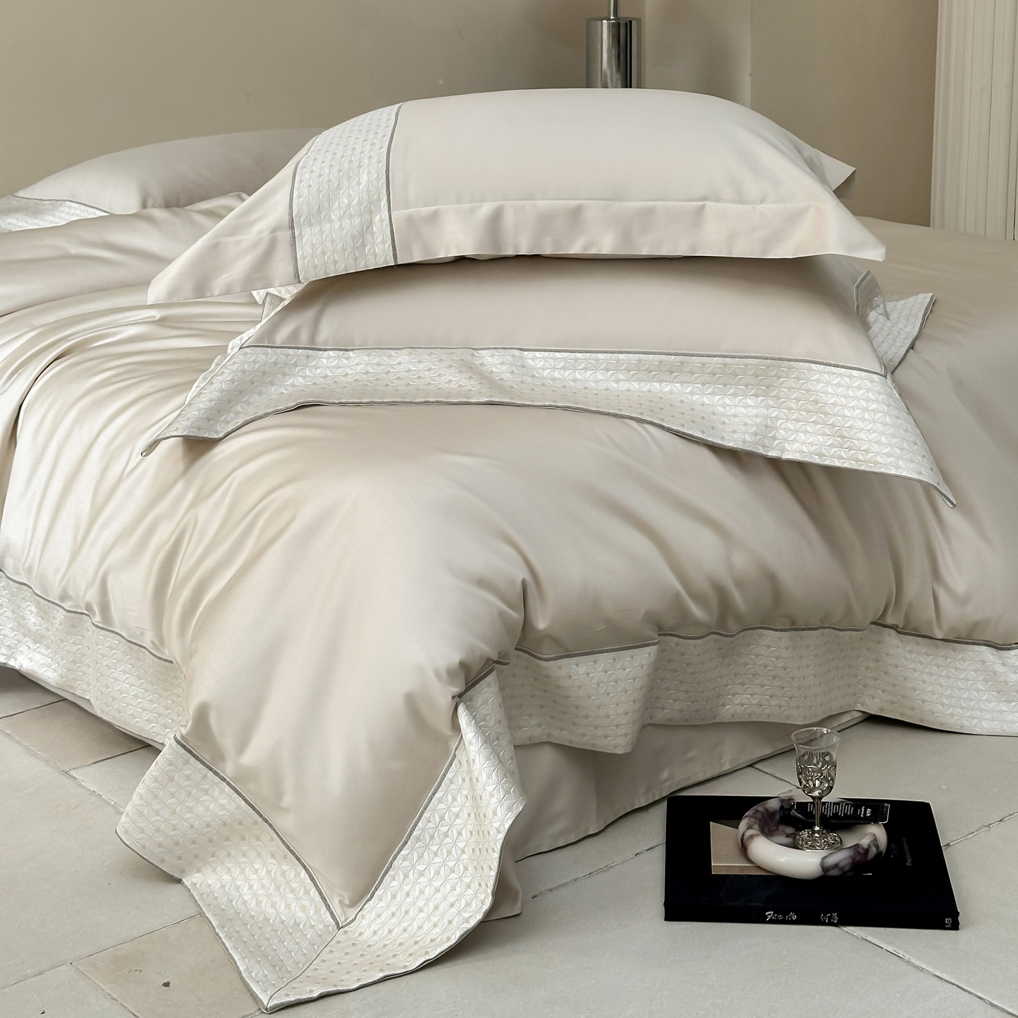 轻奢简约100S全棉长绒棉四件套纯棉花边亲肤四季 裸睡床单被套