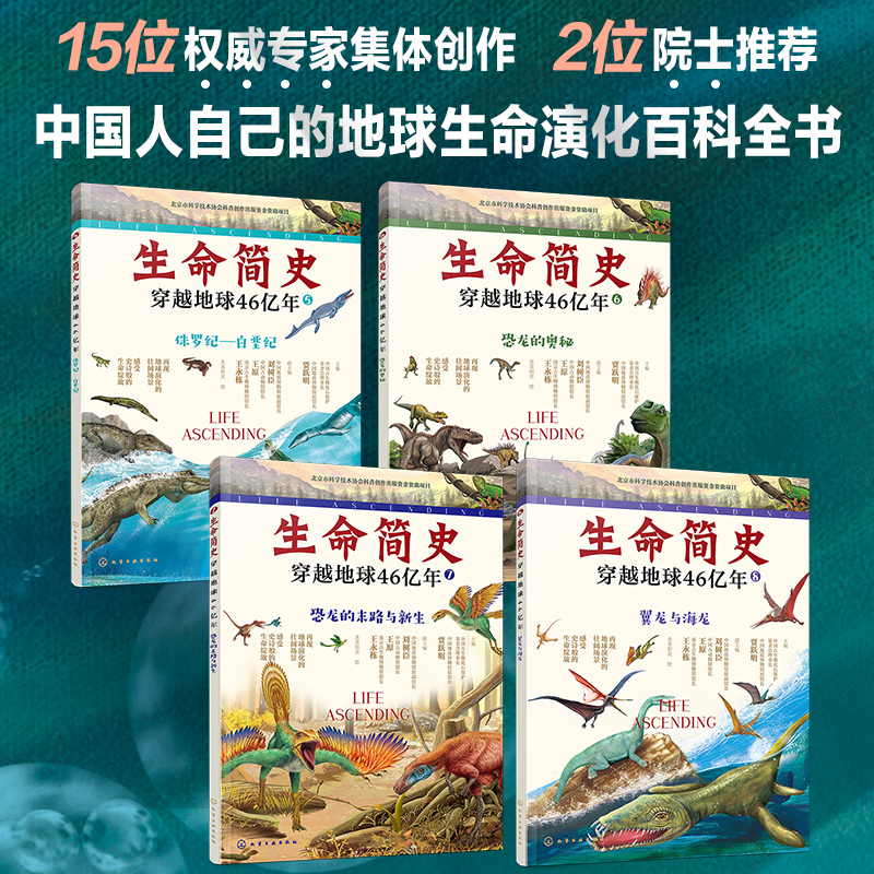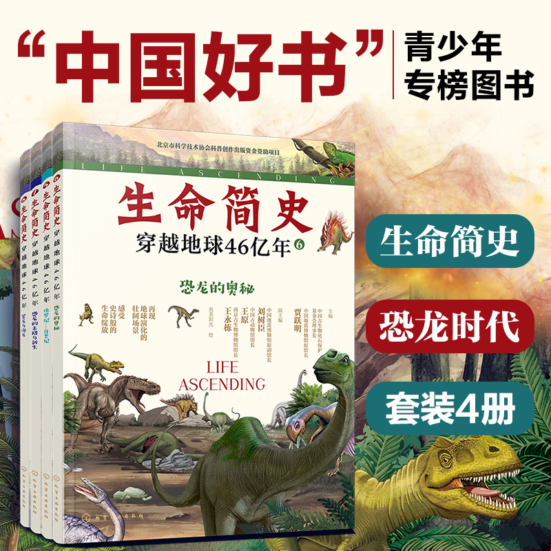 恐龙时代 4册 宇宙起源地球形成生命诞生史前世界探索图书籍 生命简史 15岁儿童中小学生青少年历史科普读物 穿越地球46亿年