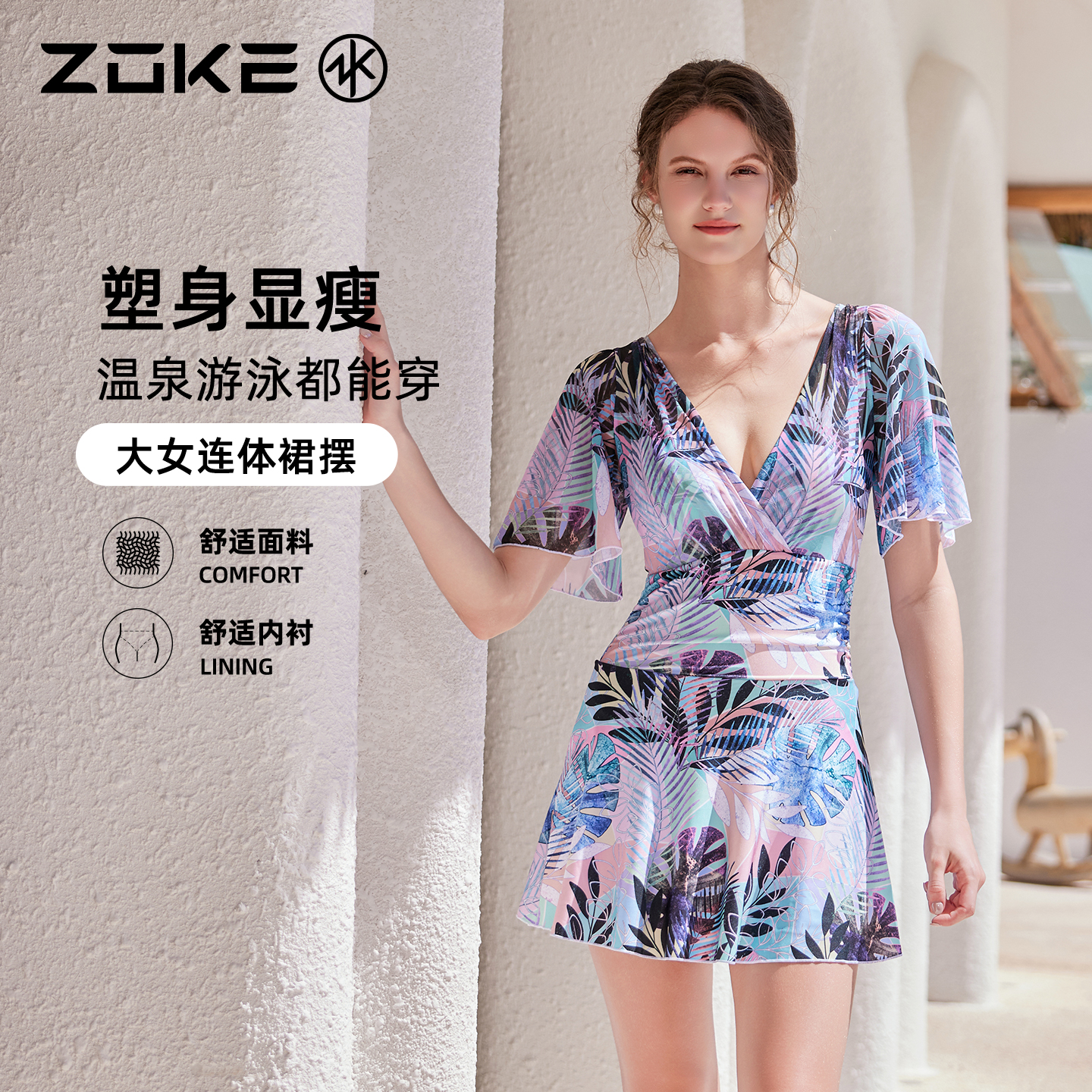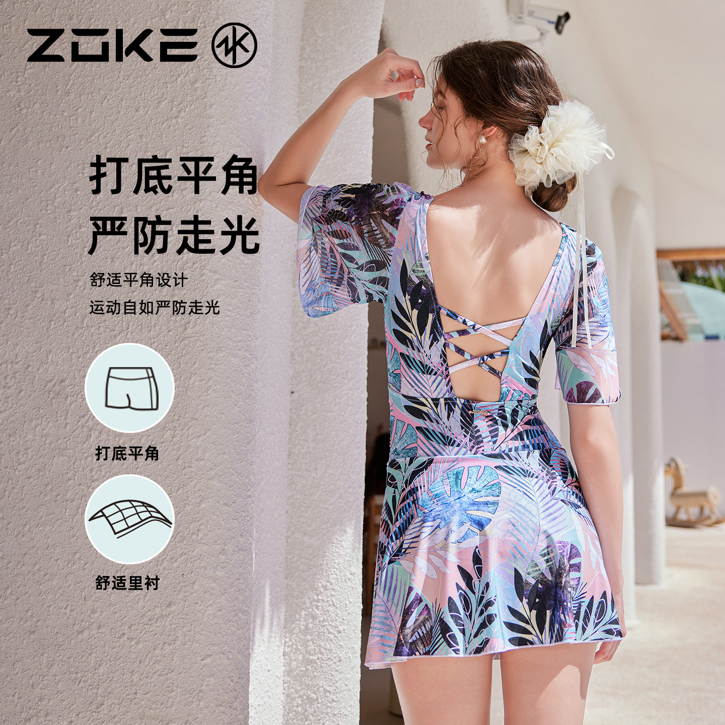 洲克女士连体泳衣平角保守防晒zoke大码 优雅度假游泳 遮肚显瘦时尚
