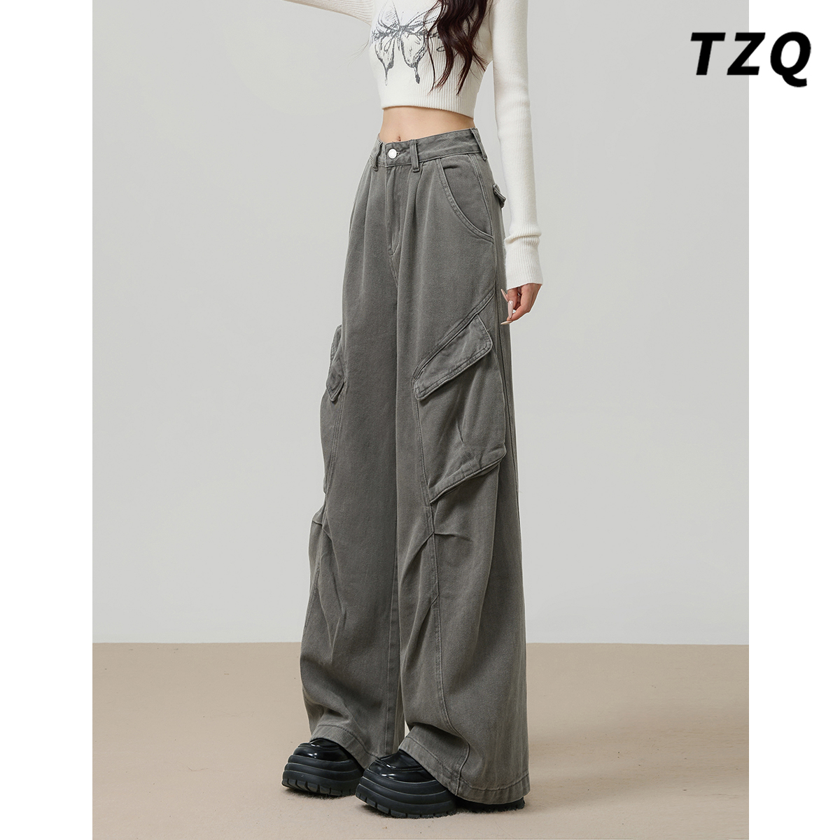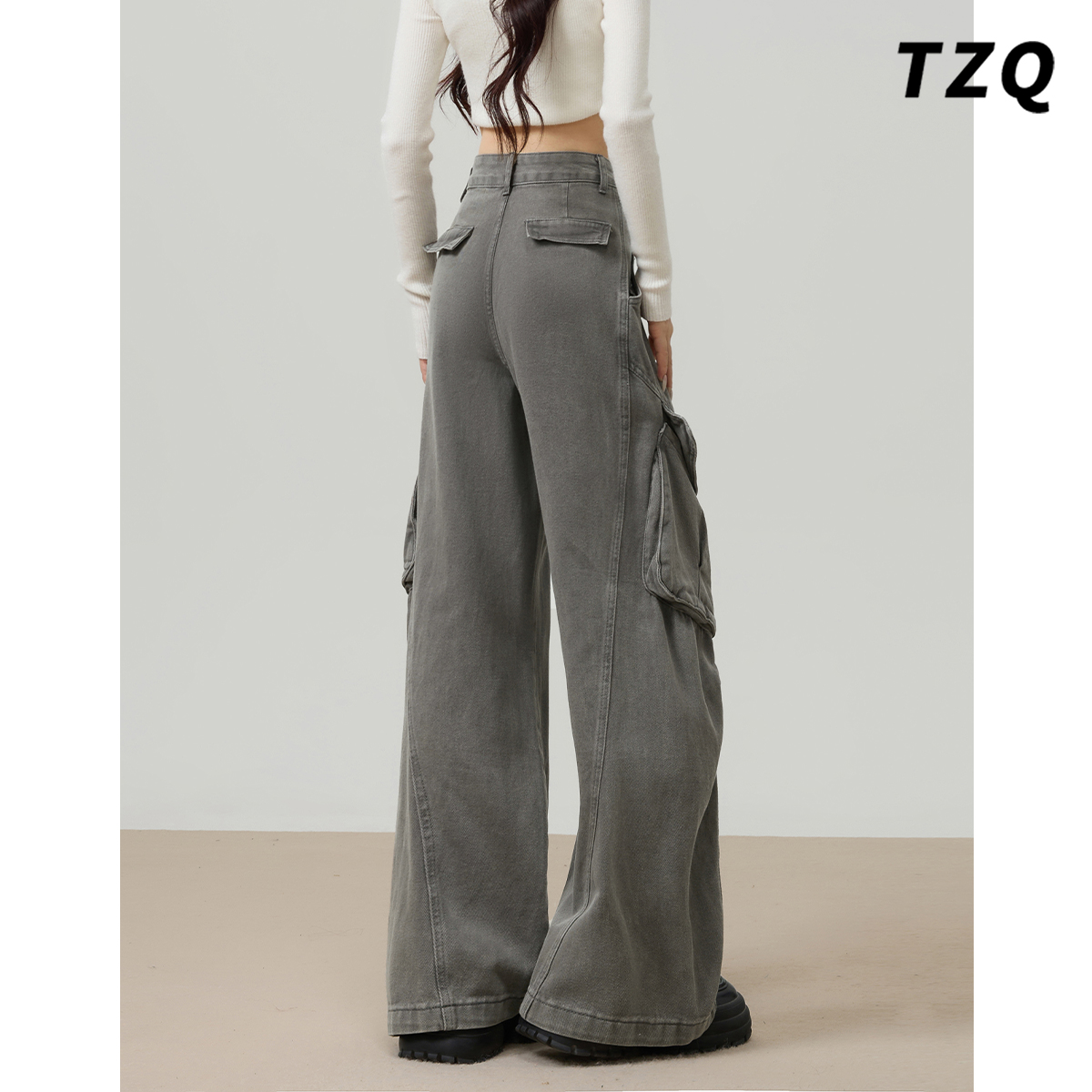 松弛老钱风撞色宽松阔腿裤 女2025秋新款 325332074 Moda牛仔裤 Vero