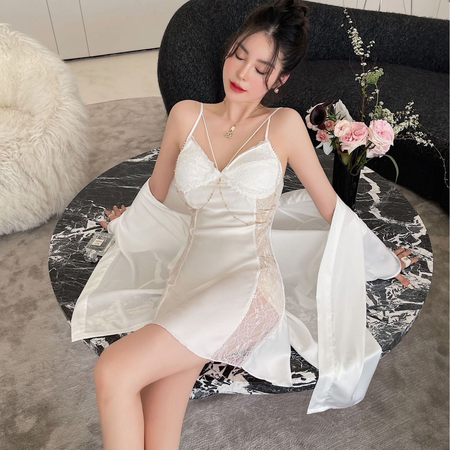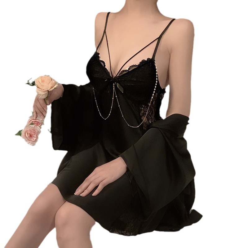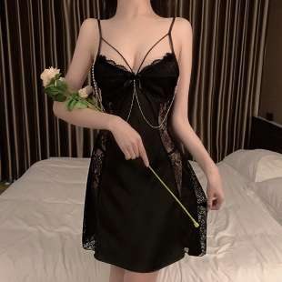 纯欲风丝绸睡衣家居服 法式 性感睡衣女冰丝带胸垫吊带睡裙夏季 薄款
