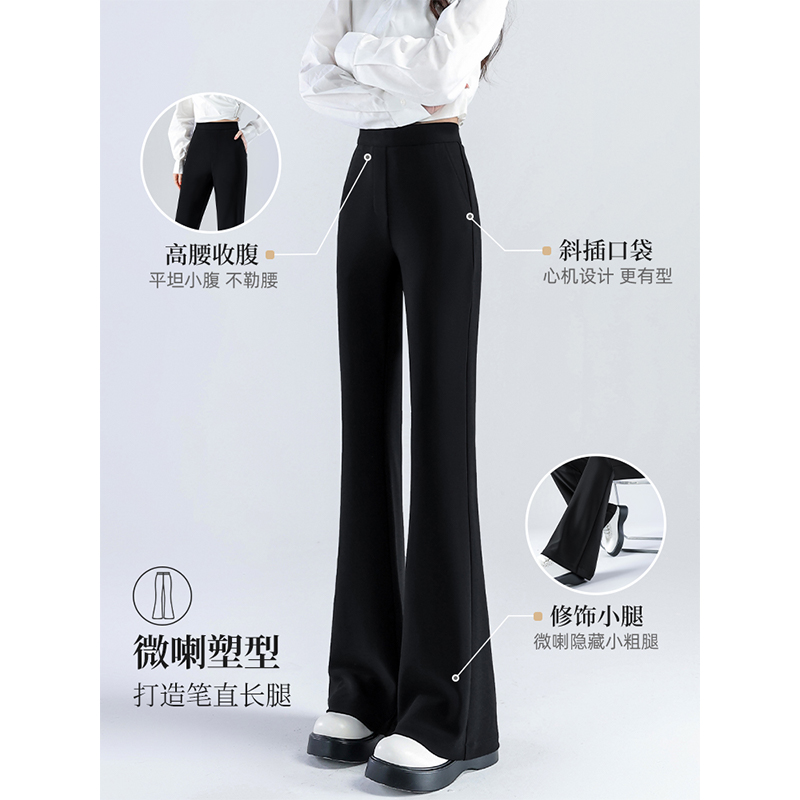 女春秋新款 休闲直筒慵懒松弛感裤 高腰垂感窄版 裤 子 西装 黑色阔腿裤