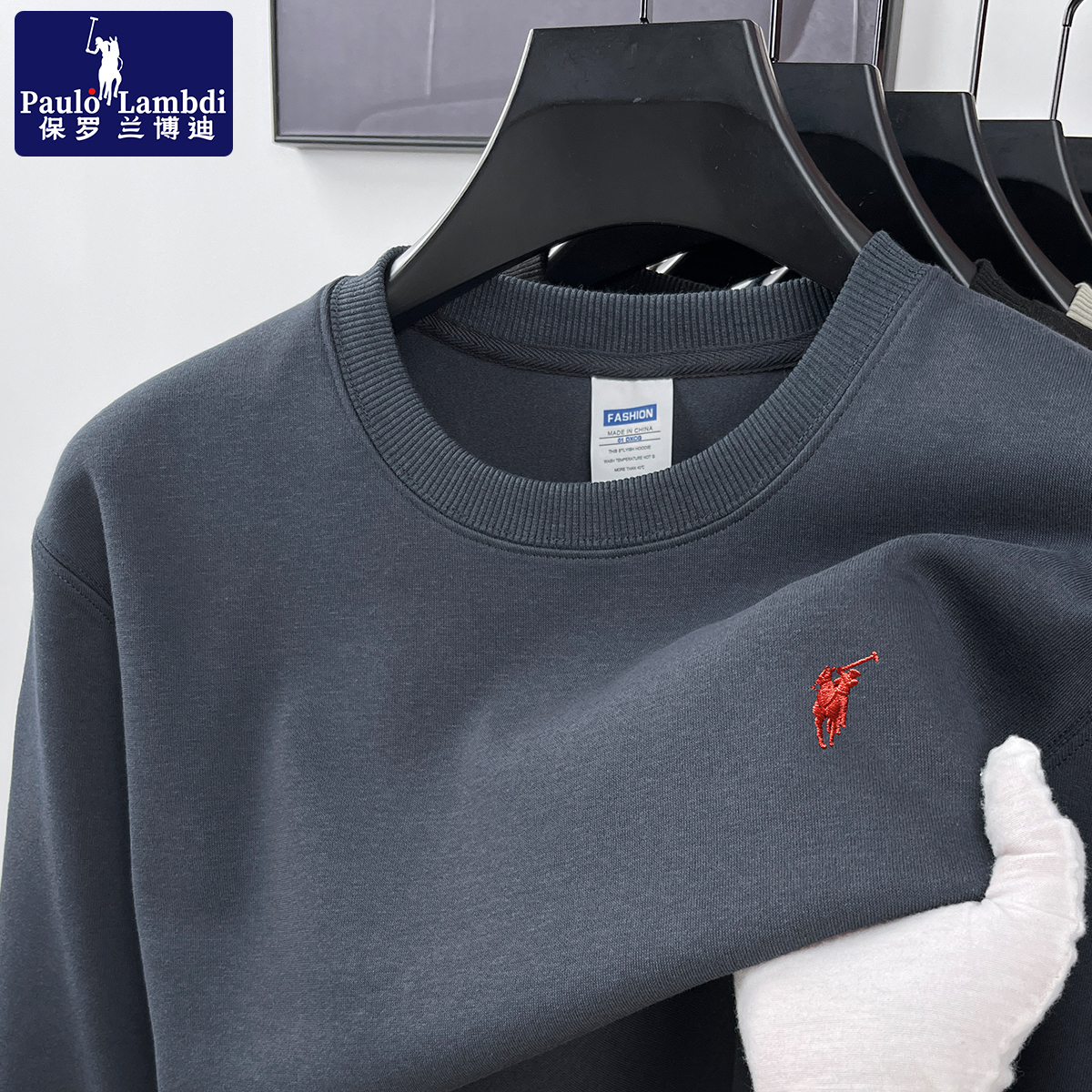 新款 t恤衫 长绒棉卫衣男士 休闲宽松落肩长袖 高档刺绣时尚 保罗秋季