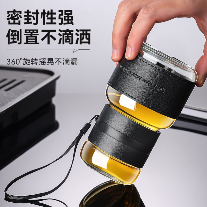 高颜值玻璃杯泡茶便携式 加厚茶水分离防烫吨吨杯泡茶杯便携带提绳