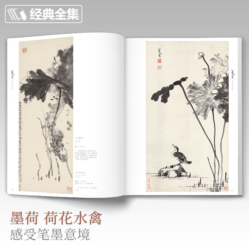 石涛画集八大山人画集8开中国画临摹画册书籍写意水墨国画山水花鸟鱼虫技法教材高清册页苦瓜和尚朱耷花卉禽鸟名作赏析鉴赏 2册