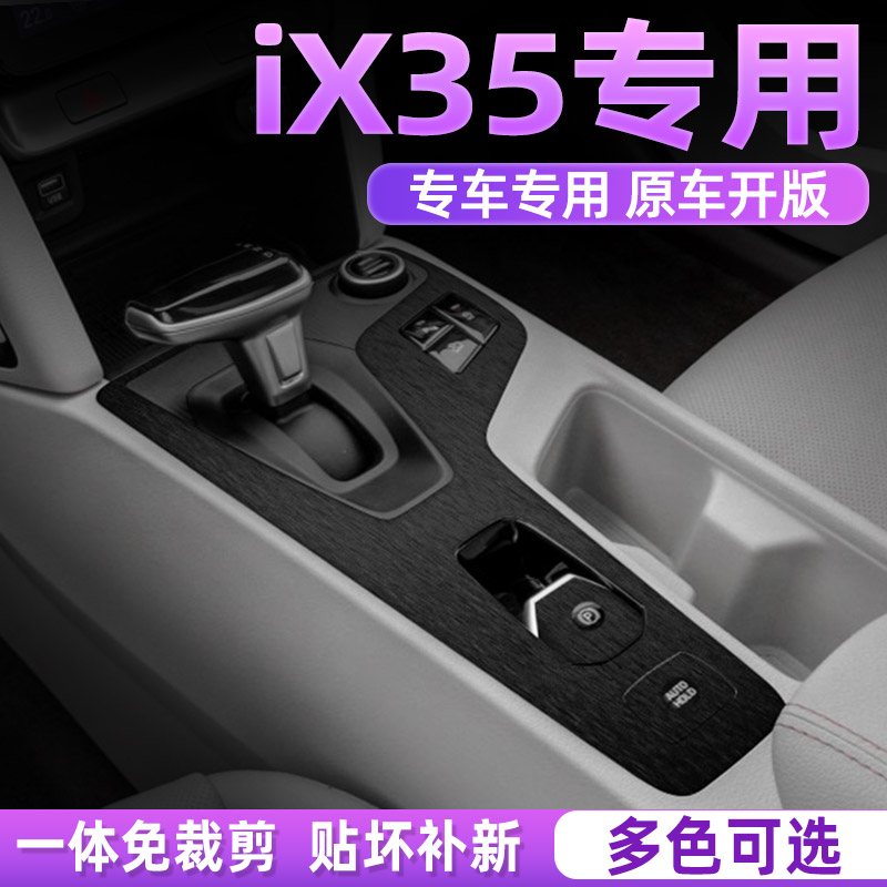 拉丝灰贴纸中控排档车内装 现代ix35内饰改装 饰贴膜 23款 适用于21